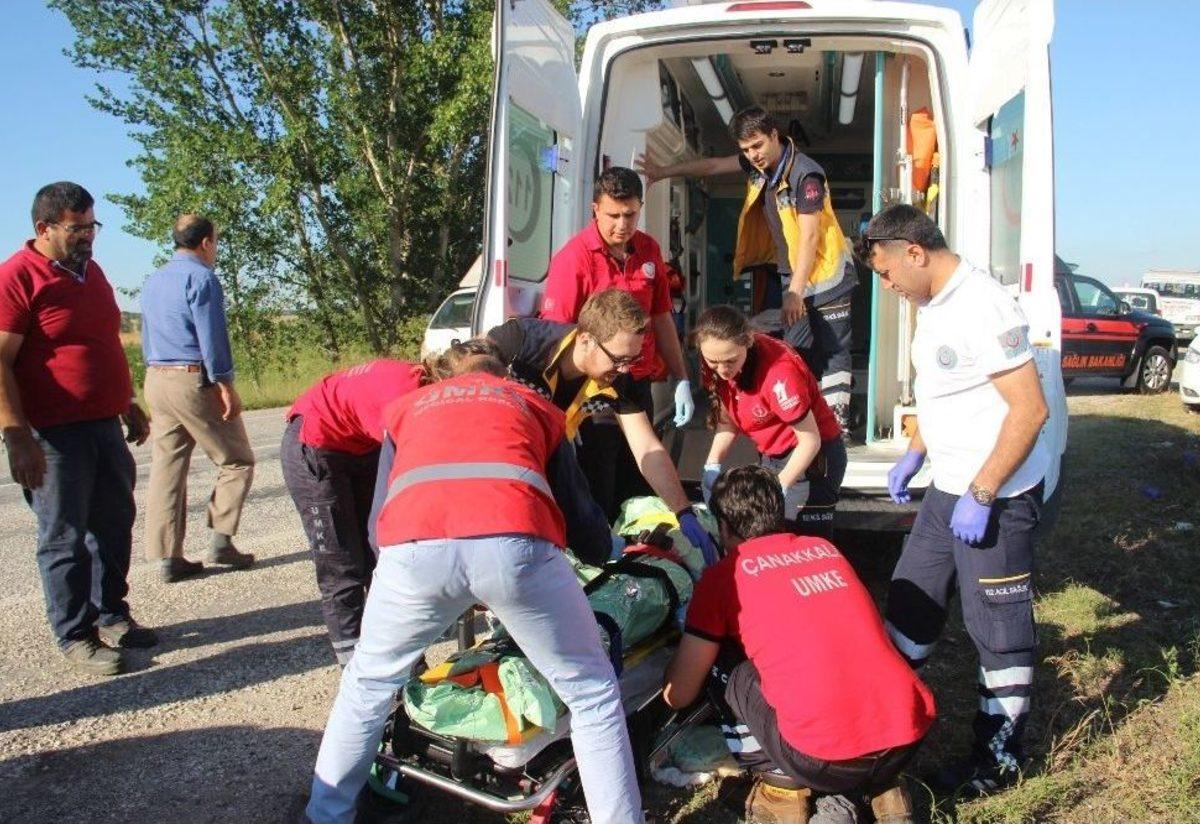 Çanakkale’nin Çan ilçesi yakınlarında, kontrolden çıkan otomobil su dolu gölete uçtu. Araç gölete batmaması için bir tıra bağlanarak sabitlendi. Araçta yolcu olarak bulunan ve yeni ameliyat olduğu için çıkamayan vatandaş, ekipler çalışırken yarıya kadar suya gömülmüş araçta bekledi.Çan-Çanakkale karayolunun 14 kilometresinde Bahadırlı köyü yakınlarında meydana gelen kazada Mustafa Kaya sevk ve idaresindeki 17 HP 580 plakalı özel araç, sürücüsünün direksiyon hakimiyetini kaybetmesi sonucu yol kenarında bulunan menfez birikintisinden oluşan gölete uçtu. Suya saplanan araçtan kendini dışarıya atan sürücü Kaya’nın yanında bulunan babası Ali Kaya ise kalça ameliyatı geçirdiği için araçtan çıkamadı. Suyun bataklık olması nedeniyle araçtan alınamayan Ali Kaya’ya önce yoldan geçen bir tır şoförü yardımcı oldu. Aracı ip yardımı ile tıra sabitleyen sürücü aracın kayarak gölete batmasını önledi. Çan Belediyesi İtfaiye ekipleri, Çanakkale UMKE ekibi ve 112 ekiplerinin yoğun çalışmaları sonrasıyla vinç yardımı ile göletten çıkarılan araçta bulunan Ali Kaya’ya 112 ekipleri olay yerinde müdahale ederek Çan Devlet Hastanesine kaldırıldı. Çanakkale’de ameliyat sonrası hastaneden taburcu olan Kaya evine gidemeden kaza sonrası tekrar hastaneye kaldırıldı. Kazada yaralanan olmazken, olayla ilgili soruşturma başlatıldı.