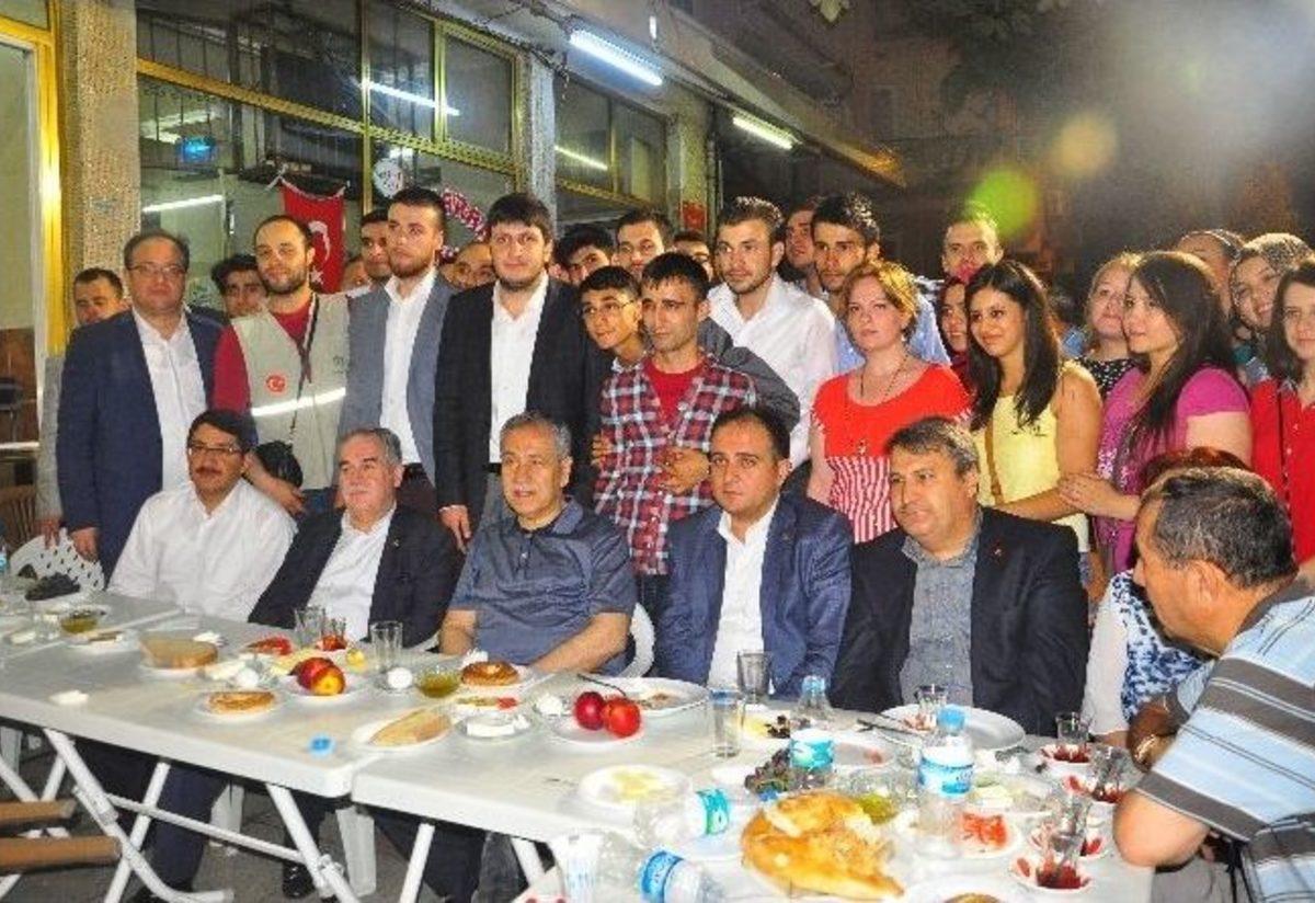 AK Parti Şehzadeler İlçe Başkanlığının düzenlediği sahur yemeğine katılan Başbakan Yardımcısı ve Hükümet Sözcüsü Bülent Arınç, “10 Ağustos tarihinde cumhurbaşkanlığı seçimi yapılacak. Bu güzel ülkemizin başına hayırlı bir cumhurbaşkanının geçmesi ve Türkiye’yi bir beş yıl yönetmesidir. Gönüllerimizden sayın başbakanımız geçiyor” dedi.AK Parti Şehzadeler İlçe Başkanlığınca Alaybey Mahallesinde düzenlenen sahur yemeğine Başbakan Yardımcısı ve Hükümet Sözcüsü Bülent Arınç’ın yanı sıra AK Parti Manisa Milletvekili ve TBMM Plan ve Bütçe Komisyonu Başkanı Recai Berber, AK Parti İl Başkanı Murat Baybatur, Şehzadeler Belediye Başkanı Ömer Faruk Çelik, Yunus Emre Belediye Başkanı Mehmet Çerçi, AK Parti Şehzadeler İlçe Başkanı Ahmet Tonguç ve Yönetim Kurulu Üyeleri, AK Parti İl Gençlik Kolları Başkanı Halil Özkan, AK Parti Şehzadeler Kadın Kolları Başkanı Asiye Zurnacı, AK Parti Şehzadeler Gençlik Kolları Başkanı Volkan Karabulut, Yunus Emre Gençlik Kolları Başkanı Emre Şener, partililer ve çok sayıda mahalleli katıldı.AK Parti Şehzadeler İlçe Başkanı Ahmet Tonguç, Başbakan Yardımcısı ve Hükümet Sözcüsü Bülent Arınç’a sahur davetine icabet ettiği için teşekkür ederek başladığı konuşmasında şunları söyledi: “Daha önce Sayın Başbakan Yardımcımıza sahur daveti yaptığımda bu davete icabet etmek ve sizlerle buluşmaktan büyük memnuniyet duyacağını ve yaptığım davetin kendilerini heyecanlandırdığını söylemişti. Davetimizi kabul edip bizlerle aynı sofrada lokmamızı paylaştığı için şahsım, teşkilatım ve Şehzadeler ilçesindeki vatandaşlarımız adına çok teşekkür ediyorum. Böylesi hayırlı ve bereketli bir saatte de Allah’tan kendilerine sağlıklı, hayırlı ve uzun ömürler vermesini dua ve niyaz ediyorum”Başbakan Yardımcısı Bülent Arınç da konuşmasında, “İftarın ayrı bir bereketi var sahurun ayrı bir bereketi var. Bu güzel sofralarda dostluğumuzu kardeşliğimizi pekiştirdik. Allah’a hamdolsun birbirimizi hiç unutmuyoruz. Birbirimizi çok seviyoruz" dedi. 10 Ağustos tarihinde cumhurbaşkanlığı seçimleri yapılacağını anlatan Arınç, şunları söyledi: "Bu güzel ülkemizin başına hayırlı bir cumhurbaşkanının geçmesi ve Türkiye’yi bir beş yıl yönetmesidir. Gönüllerimizden sayın başbakanımız geçiyor. Hayırlı olacaksa eğer Rabbim nasip etsin inşallah.”