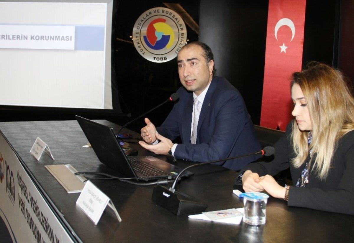 Türkiye Odalar ve Borsalar Birliği (TOBB) Hukuk Müşavirleri Yardımcı Doçent Doktor İbrahim Nihat Bayar ile Pelin Gökçe Uğurlu’nun konuk olduğu Kişisel Verilerin Korunması Kanunu ve Veri Sorumluları Sicil Bilgi Sistemi Bilgilendirme Toplantısı, ATB Toplantı Salonu’nda yapıldı. Yoğun katılımlı toplantının açılışında konuşan Antalya Ticaret Borsası Yönetim Kurulu Üyesi Hüseyin Simav, “Kişisel verilerin korunması gerek kişisel haklarımızın korunması gerek verilerimizin güvenliğinin sağlanması yönleriyle hepimizi yakından ilgilendiren bir konudur” dedi.