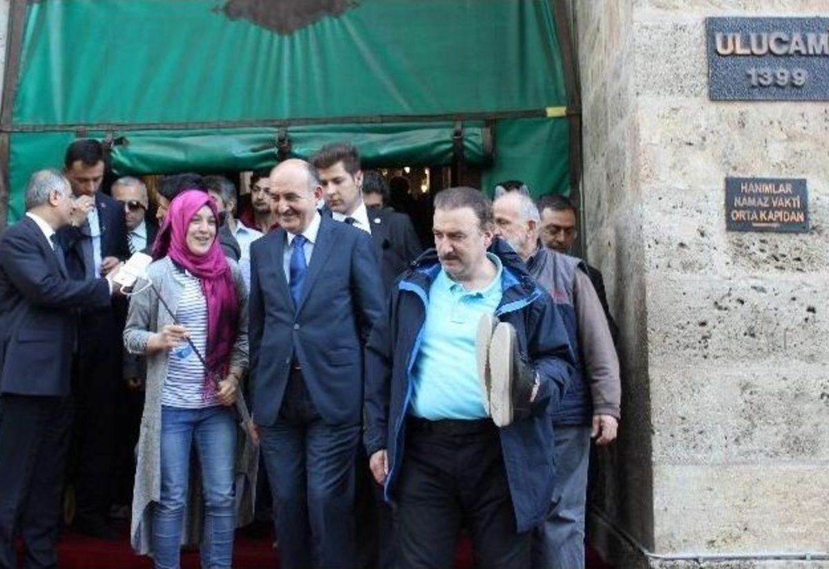 İçişleri Bakanı Efkan Ala ve Sağlık Bakanı Mehmet Müezzinoğlu, patlamanın ardından Ulucami’de namaz kıldı.Ulucami’nin batı kapısında canlı bombanın kendini patlatmasının ardından Bursa’ya gelen bakanlar, tarihi camide namaz kıldı. İçişleri Bakanı Efkan Ala ve Sağlık Bakanı Mehmet Müezzinoğlu, evvela patlamanın olduğu yeri inceleyip, dükkanları zarar gören esnafa geçmiş olsun dileklerinde bulundu. Ardından patlamada yaralananları hastanede ziyaret eden bakanlar, daha sonra ikindi namazını kılmak için Ulucami’ye gelerek, namaz kıldı. Vatandaşlar bakanlara sevgi gösterisinde bulundu. Bazı vatandaşlar ise bakanlarla beraber fotoğraf çekildi.