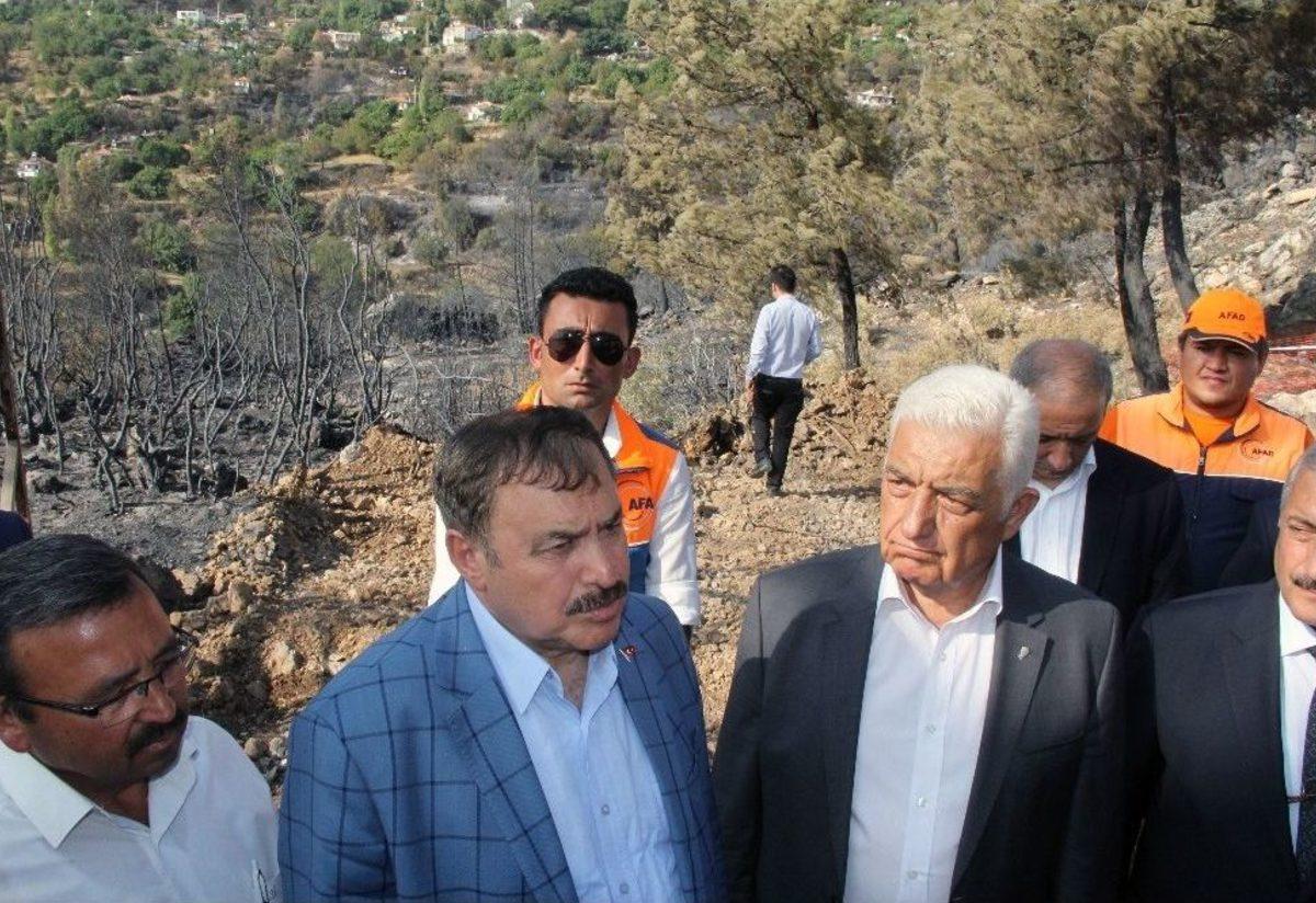 Muğla’nın Menteşe ilçesi Zeytinköy Mahallesi’nde yangından etkilen vatandaşlar ile bir araya gelen Orman ve Su İşleri Bakanı Veysel Eroğlu, “Devletimiz ve hükümetimiz güçlüdür, bu köyü yeniden var edeceğiz” dedi.Orman ve Su İşleri Bakanı Veysel Eroğlu, Muğla’nın Menteşe ilçesi Zeytinköy Mahallesi’nde 51 evin yandığı bölgede incelemelerde bulundu. Vatandaşlar ile görüşen Bakan Eroğlu, “Orman personelimiz özverili bir şekilde çalıştı, çünkü bir can kaybı olmasını istemiyorduk. Mal kaybı oldu ancak bizim burada tek tesellimiz bir can kaybının olmaması. Çünkü bir can kaybı olduğu zaman yüreğimiz adeta sızlıyor. Çok büyük bir felaket atlattık. Şuanda hasar tespit çalışmaları devam ediyor. Netice olarak hükümetimiz ve devletimiz gereken her türlü desteği verecektir. Evi yanan vatandaşlarımıza maddi imkanların yanında gerekli yiyecek ve giyecekler gönderildi. İlk etapta 3 bin lira yardım desteği verildi. Devletimiz güçlüdür, gerekli çalışmalar yapılacak” şeklinde konuştu.Bakan Eroğlu, “Yangın çıktığı geceden itibaren bütün devlet birimleri buradaydı. Burada Orman ve Su İşleri Bakanlığı olarak bizim de yapacaklarımız var. Burası orman köyü, Zeytinköy, bizim köyümüz. Durumu bizzat göreceğiz ve gereken her türlü çalışmayı yapacağız. Köydeki vatandaşlarımıza OR-KÖY’den destek vereceğiz. Süt sığırcılığı, arıcılık, civardaki orman alanlarından gelir getirici türler dikerek 3 yıl tüm masrafları bize ait olacak şekilde sizlere dağıtacağız. Buranın yeniden kalkınması için ne gerekiyorsa yapacağız. Bu konuda orman teşkilatımız son derece güçlüdür. Burada yangından meydana gelen hasarları gidereceğiz. Maalesef bu yangınlar insan kaynaklı. Bu yangın kendiliğinden çıkmadı. Maalesef birileri kasıt değil ama ihmal neticesinde rüzgarlı bir günde, aynı zamanda nemin çok düşük, sıcaklığın yüksek olduğu bir günde yangın çıktı. Allah bir daha böyle keder ve acı göstermesin. Can kaybı olmadığı için mutluyuz. Can kaybının telafisi yok, diğer kayıpların telafisi mümkün” dedi.Bakan Eroğlu, yanan alanların kesinlikle imara açılmayacağını ve bölgenin bal ormanı ve gelir getirici türler için tahsis edileceğini söyledi. Bakan Eroğlu, evsiz kalan vatandaşlar için AFAD tarafından kurulan konteynır bölgesinde incelemelerde bulunurken Zeykinköy’de yeni bir yangın çıktı. Helikopterlerin anında müdahalesi sonucunda alevler büyümeden söndürüldü.