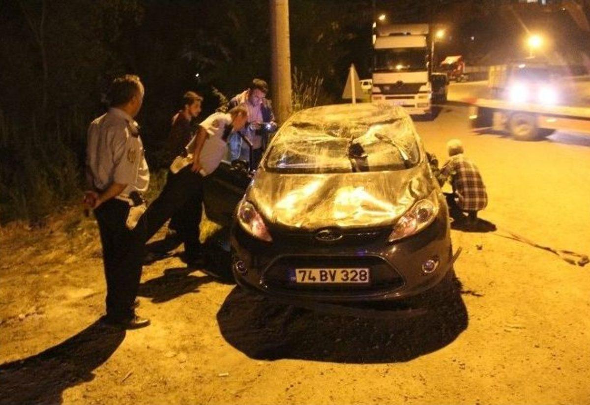 Bartın’da kontrolden çıkan otomobil, takla atarak şarampole uçtu.Edinilen bilgilere göre, kaza, çevre yolu Safranbolu kavşağı mevkiinde meydana geldi. İmam Hatip kavşağından Bartın Devlet Hastanesi istikametine giden A.Ö (24) idaresindeki 74 BV 328 plakalı otomobil, taklalar atarak şarampole uçtu. Kazadan sonra sürücü A.Ö araçtan kendisi çıktı. Kazayı hafif sıyırıklarla atlatan sürücü A.Ö’yü polis, Bartın Devlet Hastanesine götürdü.Polis, kazayla ilgili soruşturma başlattı.