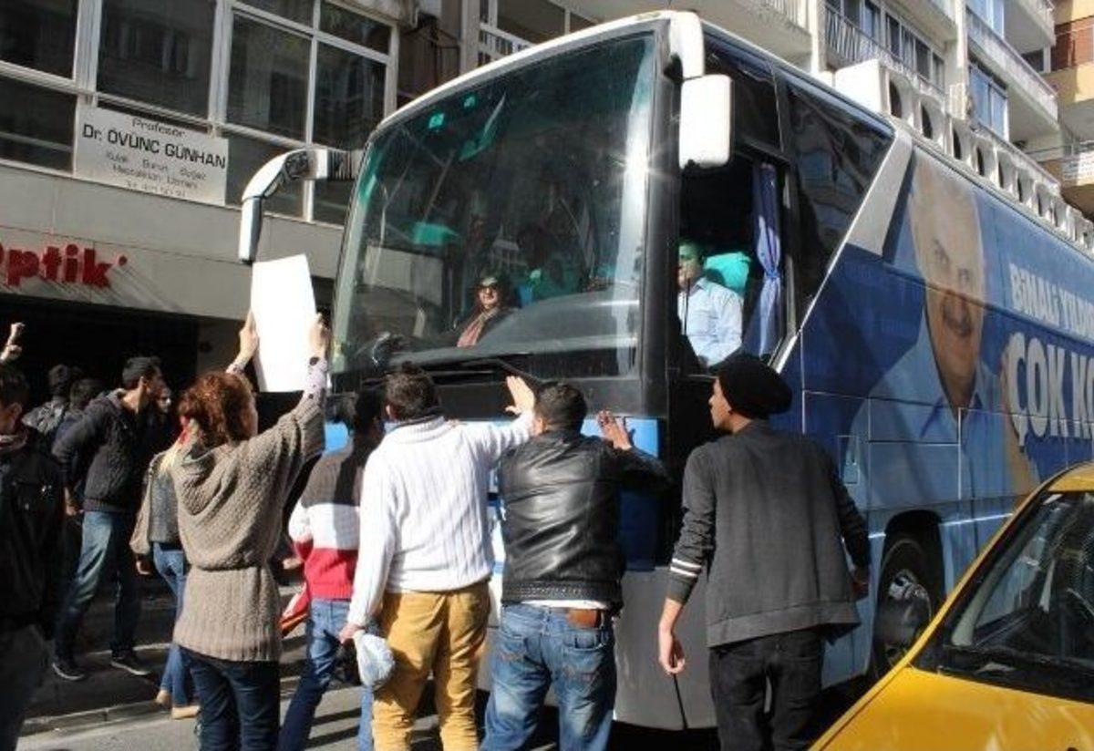 Başbakan Recep Tayyip Erdoğan’ın Gündoğdu mitingi öncesi, alan dışında toplanan grup Berkin Elvan sloganları attı. Kıbrıs Şehitleri Caddesi boyunca yürüyen grup, daha sonra AK Parti Büyükşehir Belediye Başkan Adayı Binali Yıldırım’ın seçim otobüsünü durdurarak slogan attı. Bu sırada mitinge gelen AK Partililer de Başbakan ve AK Parti lehine sloganlar attı.Başbakan Erdoğan’ın İzmir Gündoğdu Meydanı’nda yapacağı miting öncesi, alan dışında bulunan gruplar tarafından eylem yapıldı. “Berkin Elvan ölümsüzdür” sloganları atan grup, polis ekipleri tarafından Kıbrıs Şehitleri Caddesi’ne çıkarıldı. Bu sırada alana girmekte olan partililer de AK Parti lehine sloganlar attı.