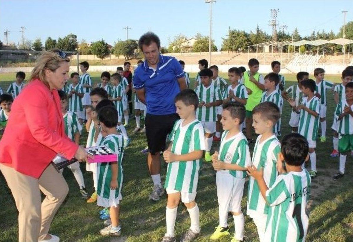 Urla Belediye Başkanı Sibel Uyar minik futbolcuları ziyaret etti. Urla 12 Eylül Stadına giden Başkan,...