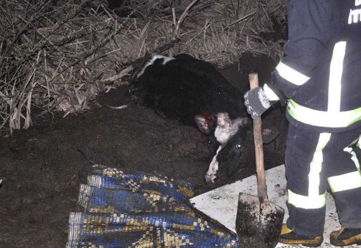 Bursa’nın İnegöl ilçesinde bataklığa saplanan inek, itfaiye ekipleri tarafından kurtarıldı.Edinilen bilgilere göre, Şipali Mahallesi girişinde etrafı tel örgüyle çevrili alanda otlayan 10 büyükbaş hayvandan biri, tel örgülerin üzerinden atlayarak kaçtı. Gece karanlığında Bedre Deresi kenarındaki bataklığa giren inek, kurtulmak için çırpındıkça iyice battı. Beline kadar bataklığa saplanan hayvan bağırmaya başlarken, sesi duyan hayvan yetiştirme tesisinin sahibi Kenan Hakandal dereye doğru yaklaştığında bataklığa saplanan ineği gördü. İş yeri sahibi ve ailesi bataklığa saplanan hayvanı kurtarmak isterken boynuzunu kırdılar. Hayvanı kurtaramayan Kenan Hakandal, İnegöl itfaiyesini aradı. Olay yerine gelen itfaiye ekipleri, bataklığa saplanan ineği halatlar ile saplandığı yerden kurtardı. Yoğun uğraşlar sonucunda kurtarılan inek sahibine teslim edildi. İneğine kavuşan Hakandal, itfaiye ekiplerine teşekkür etti.