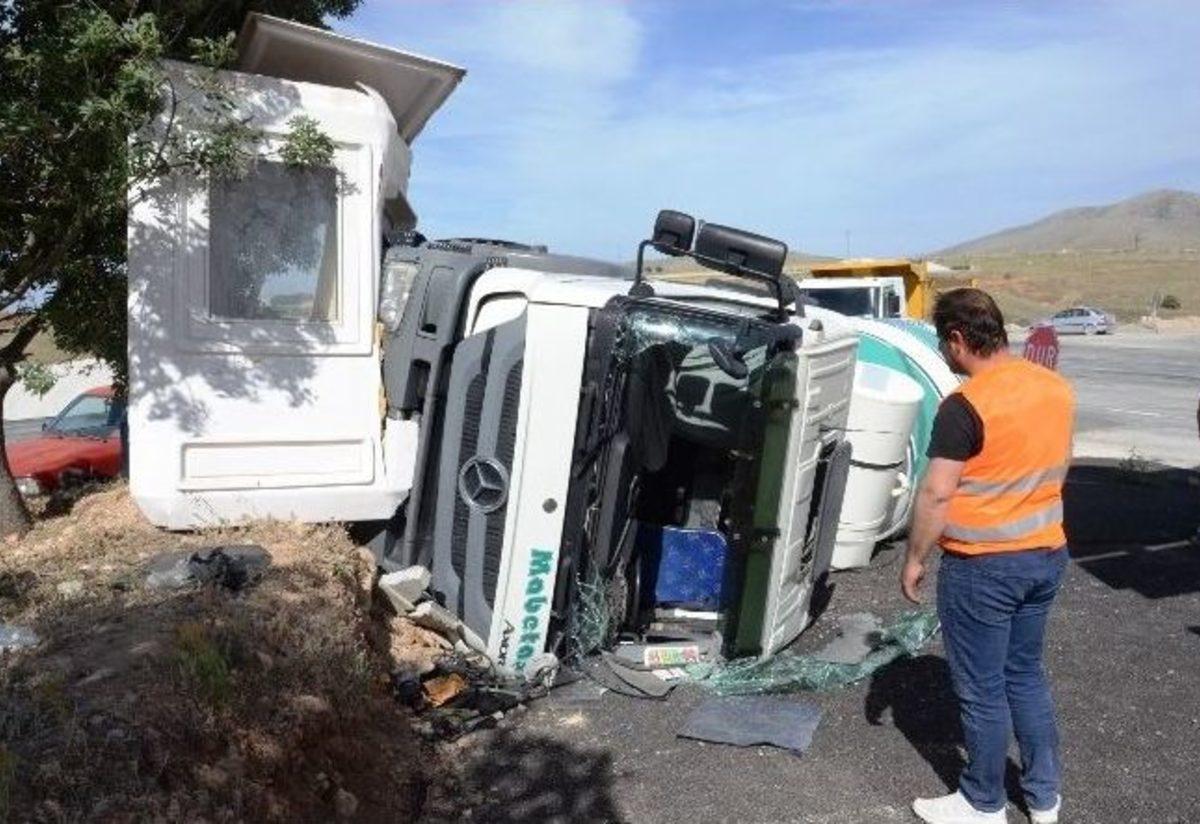 Malatya’da hafriyat kamyonu ile beton mikserinin çarpışması sonucu devrilen mikserin sürücüsü sıkıştığı yerden itfaiye ekipleri tarafından çıkartılarak hastaneye kaldırıldı.Edinilen bilgiye göre kaza, Malatya Doğanşehir yolunda bulunan Malatya Büyükşehir Belediyesi’ne ait PMT ve Mıcır Yıkama Tesisi önünde yaşandı. Taş ocağından aldığı malzeme ile tesislerdeki tartıya girmek için anayola çıkan Murat Önver(51) yönetimindeki 44 ND 711 plakalı hafriyat kamyonu, anayoldan ilerleyen Emrah Güler yönetimindeki 44 DLL 813 plakalı özel bir şirkete ait beton mikseri ile çarpıştı. Kazada devrilen beton mikseri kayarak tesislerin güvenlik kulübesine çarparak durabildi. Kaza sonrası devrilen beton mikserindeki sürücü Emrah Güler olay yerine gelen itfaiye arama-kurtarma ekiplerince sıkıştığı yerden kurtarılarak ambulansla Malatya Devlet Hastanesi’ne kaldırıldı. Yaralı sürücünün sağlık durumunun iyi olduğu belirtilirken kaza nedeniyle yolun tek şeridi bir süreliğine kapandı.Belediyeye ait tesiste çalışan hafriyat kamyonunun sürücüsü jandarmaya verdiği ifadesinde taş ocağından gelerek mıcır tesisine girmek için ana yola çıktığını ve yolu kontrol ettikten sonra karşıya geçmek istediği sırada beton mikseri ile çarpıştığını söyledi. Trafik ekipleri olay yerinde inceleme yaparken jandarma kazayla ilgili soruşturma başlattı.Öte yandan önceki günde kaza yerine yakın bir mesafede yine başka bir kaza meydana gelmiş ve yolcu minibüsünün park halindeki bir hafriyat kamyonuna arkadan çarpması sonucu 1 kişi ölmüş 2 kişi de yaralanmıştı.