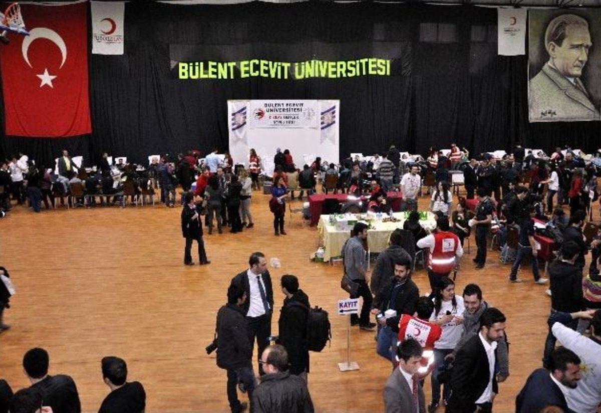 Bülent Ecevit Üniversitesi ve Türkiye Kızılay Derneği’nce ortaklaşa olarak ikincisi düzenlenen kan bağışı kampanyasına öğrenciler ilgi gösterdi. Okulun spor salonunda gerçekleştirilen “Kampusun Kanında Hayat Var” kampanyasına, Türkiye Kızılay Derneği Genel Başkanı Ahmet Lütfi Akar da katıldı. 500’üncü kanı veren Bülent Ecevit Üniversitesi Rektörü Prof. Dr. Mahmut Özer ise kampanyayı her yıl geleneksel hale getirmeyi planladıklarını belirtti. Kampanyaya destek verenlere teşekkür eden Rektör Özer, şöyle konuştu: “Amacımız çalışanlarımız ve öğrencilerimizle birlikte bir rekor kırmak değildir. Bu kanın en acil hem de sürekli ihtiyaç olduğunu tüm topluma göstermektir. Bunu öğrencilerimiz ve çalışanlarımızla birlikte gerçekleştirebilmektir. Onun için bu sene 2. defa bunu düzenliyoruz. Hedefimiz bunu geleneksel hale getirmek. Her defasında da Kızılay Genel Başkanımızı aramızda görmekten büyük mutluluk duyuyorum. Bu kampanyaya destek veren öğrencilerimizi gözlerinden öpüyorum. Organizasyonda emeği geçen tüm arkadaşlara şükranlarımı sunuyorum”