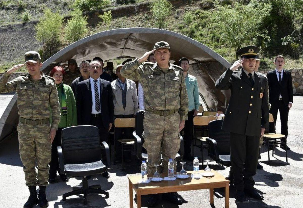 Gümüşhane İl Jandarma Komutanlığı, Engelliler Haftası nedeniyle 6 engelli vatandaşa bir günlük temsili askerlik yaptırarak terhis belgelerini verdi.Aileleriyle birlikte İl Jandarma Komutanlığı bahçesine gelen 6 engelli vatandaş, üniformalarıyla birlikte saygı duruşunda bulunup İstiklal Marşını okuduktan sonra Türk bayrağı ve üzerindeki silahlara ellerini basarak yemin etti.İl Jandarma Komutan Yardımcısı Dr. Semih Bulut’un da katıldığı törende günün anlam ve önemiyle ilgili konuşmayı yapan Personel Asteğmen Yusuf Alipaşaoğlu, “Kahraman silah arkadaşlarım” diyerek başladığı konuşmasında, “Jandarma Genel Komutanlığının bir ferdi olmaktan gurur duyun. Türkiye Cumhuriyeti sizlerin omuzlarında daima yükselecek, bayrağımız kutsal vatan topraklarının üzerinde sonsuza dek dalgalanmaya devam edecektir. Muhtaç olduğunuz kudret damarlarınızdaki asil kanda mevcuttur” dedi.Askeri personel eşliğinde yemin eden temsili askerler ve ailelerine daha sonra çeşitli ikramlarda bulunuldu. Burada askerler ve aileleriyle bir süre sohbet eden Komutan Yardımcısı Yarbay Dr.Semih Bulut, temsili askerlik yapan engelli vatandaşlara terhis belgelerini takdim etti.Ailelerin bu anları cep telefonlarına kayıt ederek ölümsüzleştirdiği törende bir rütbeli askerin yemin törenine katılan yürüme engelli 21 yaşındaki Burak Karakoç’u kucağında alana kadar taşıması dikkatlerden kaçmadı.