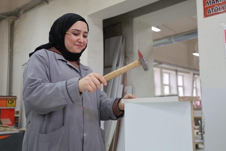 Elazığ Mesleki ve Teknik Anadolu Lisesi, verdiği eğitimleri birçok atölyede pratiğe dönüştürüyor. Fabrika gibi çalışan okulda mobilya ve iç tasarım ile metal teknolojisi alanında üretim yapılıyor. Bir yılda 7 milyon lira ciro yapılan okulda, aynı zamanda atölyelerde çalışan öğrenciler de döner sermayeden ücret veriliyor. Genelde erkek işi olarak özdeşleyen mobilya bölümde ise 10. sınıf öğrencisi 16 yaşındaki Elif Yaren Bağatur tek kız olarak göze çarpıyor. Kulağında kalem elinde çekiç ile mobilya üreten Bağatur, erkek akranlarına taş çıkartıyor. Tüm cihazları kullanmayı öğrenen Bağatur, yapamazdın diyenlere inat başarıyla çalışıyor.