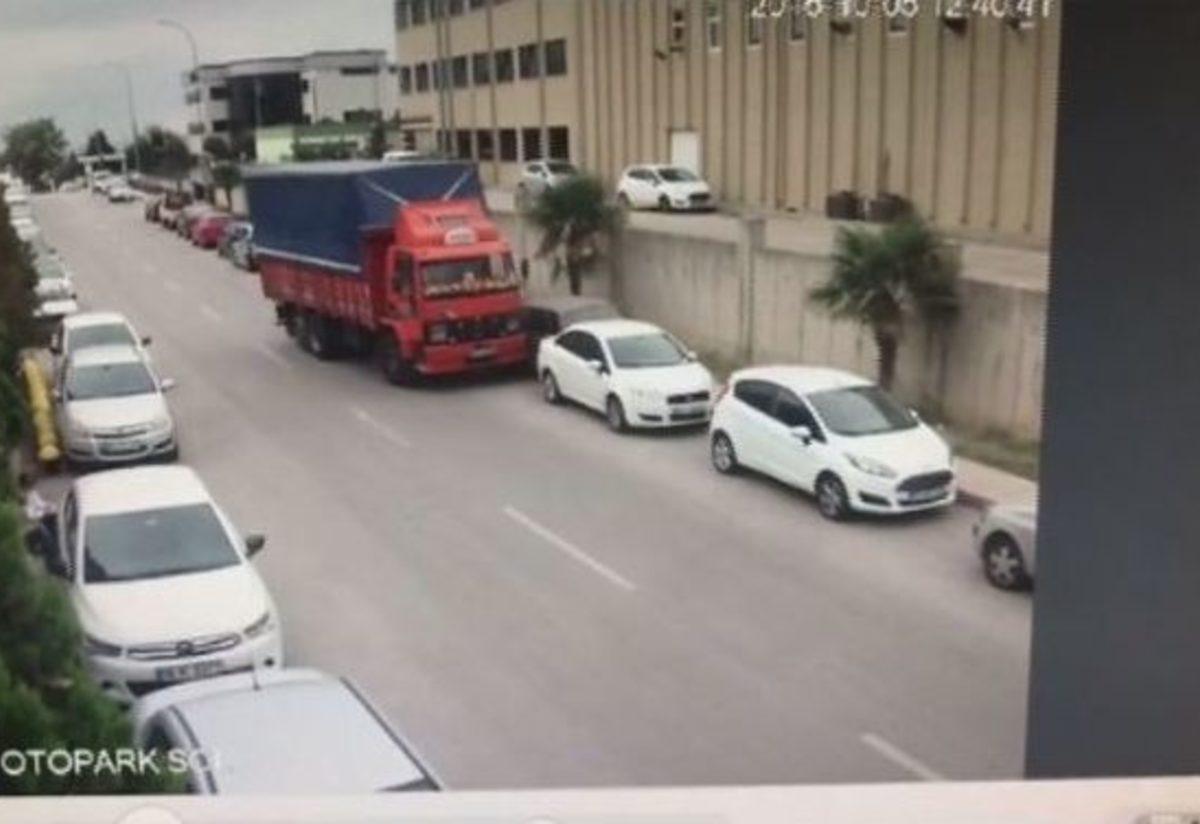 Bursa’da direksiyon başında kalp krizi geçiren kamyon sürücüsü, hayatını kaybetti. Sürücünün fenalaşması ve park halindeki 4 araca çarpması ise bir güvenlik kamerası tarafından saniye saniye kaydedildi.Alınan bilgiye göre, olay merkez Osmangazi ilçesi Demirtaş Sanayi Bölgesi’nde akşam saatlerinde meydana geldi. Bir fabrikadan aldığı kumaşları başka bir fabrikaya götürmek isteyen Necip Bulut (56) idaresindeki kamyon, sürücüsünün direksiyon başında fenalaşması üzerinde kontrolden çıkarak 4 araca çarparak durabildi. Sürücünün direksiyon başında fenalaştığını gören çevre fabrikadaki işçiler polis ve ambulanstan yardım istedi. Hemen hastaneye kaldırılan 3 çocuk babası Bulut, doktorların müdahalesine rağmen hayatını kaybetti.Görgü tanıkları olayı anlatırken, kaza anı ise çevredeki bir fabrikanın güvenlik kamerasına yansıdı. Cumhuriyet Savcılığı olayla ilgili soruşturma başlattı