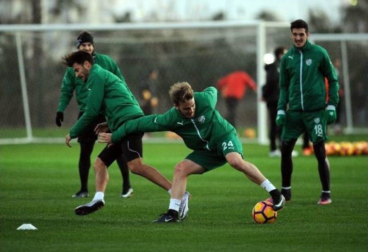 Hazırlıklarını Antalya’da sürdüren Bursaspor’da, izinden dönen kaptan Batalla ile Del Valle kampa katıldı. Jorquera’nın ise yarın kampa dahil olacağı bildirildi. Antrenmanda yeşil-beyazlı oyuncuların neşeli oldukları görüldü.Spor Toto Süper Lig’in 2016-2017 sezonunun ikinci yarısı için hazırlıklarını Antalya’da sürdüren yeşil-beyazlılar, akşam saatlerinde yaklaşık 1 buçuk saat süren antrenman gerçekleştirdi. Teknik Direktör Hamza Hamzaoğlu, bir açılışa katıldığı gerekçesiyle antrenmanda yer almazken, yardımcı antrenörler eşliğinde çalışan yeşil-beyazlı oyuncular, antrenmanda renkli görüntüler sergiledi.Batalla ve Del Valle kampa katıldıIsınma koşularının ardından Bursasporlu oyuncuların, el ele tutuşarak yaptıkları çalışmada renkli görüntüler ortaya çıktı. İzinden dönen Batalla ve Del Valle antrenmanda yer alırken, Cristobal Jorquera’nın ise yarın takıma dahil olacağı belirtildi.Yeşil-beyazlı takım, yarın saat 18.00’de Arnavutluk’un Skenderbeu takımıyla hazırlık maçı yapacak.