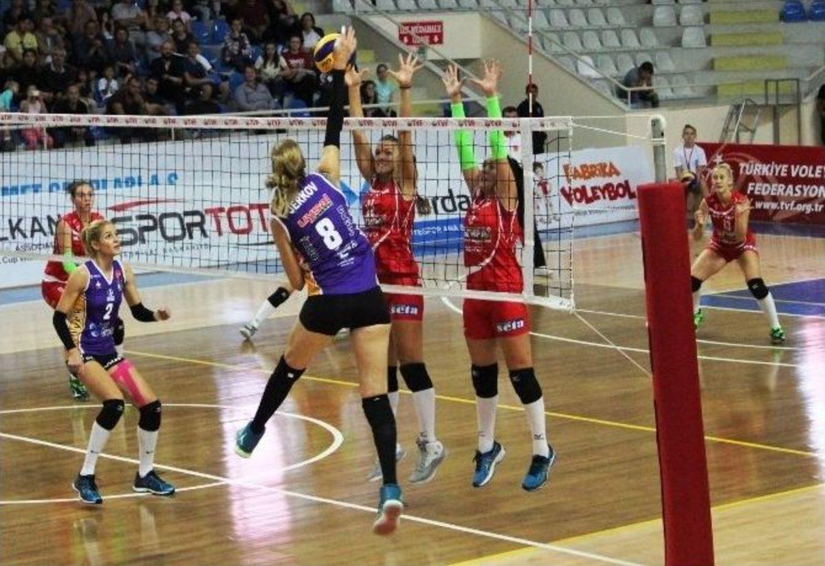 Çanakkale’de düzenlenen Kadınlar Voleybol Balkan Kupası voleybol karşılaşmalarının finalinde Çanakkale Belediyespor Bulgar ekibi Kazanlak ile...