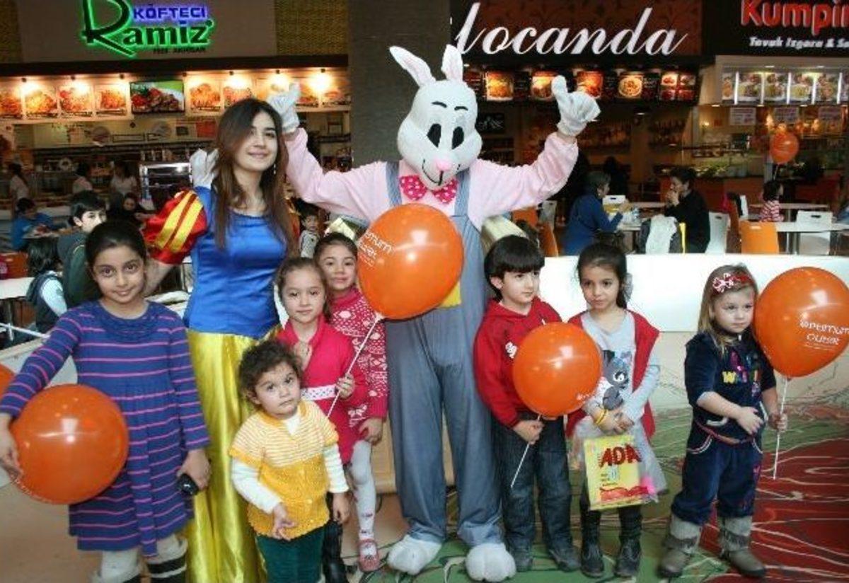 Optimum Çocuk Kulübü’nce organize edilen etkinliklere katılan miniklere, çizgi film karakteri ‘Pamuk Prenses’ ve tavşan kostümlü maskotlar aracılığı ile şeker, balon ve boyama kitabı hediye edildi.