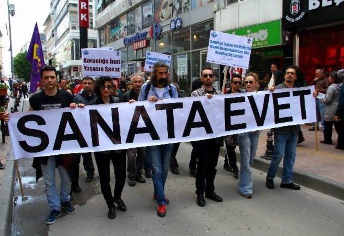 KESK’e bağlı Kültür Sanat-Sen’in Türkiye Sanat Kurumu (TÜSAK) yasa tasarısına tepki eyleminde “Sanata Evet” pankartını...