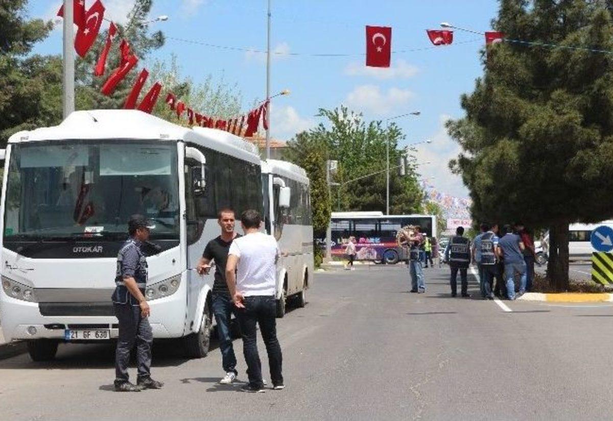 Cumhurbaşkanı Recep Tayyip Erdoğan’ın toplu açılış ve miting için geleceği Diyarbakır’da hazırlıklar tamamlandı.Cumhurbaşkanı Recep Tayyip Erdoğan, Batman’daki temaslarının ardından saat 15.30’da Diyarbakır’a gelecek. Toplu açılış töreni öncesi Diyarbakır Valiliği ve Büyükşehir Belediyesi’ni ziyaret etmesi beklenen Erdoğan’ın kullanacağı yollarda geniş güvenlik önlemi alındı. Erdoğan’ın geçmesi muhtemel caddeler trafiğe kapatıldı.Ziyaretlerin ardından İstasyon meydanında Diyarbakırlılara seslenmesi planlanan Erdoğan için, miting alanı ve çevresinde çok sayıda polis görevlendirildi. Polis birçok yerde barikat kurdu. Miting alanına çıkan yollara da barikat kuran polis, vatandaşların barikatlardan geçmesine izin vermedi.Öte yandan miting alanına girmek için bekleyen çocuklara görevliler tarafından bayrak dağıtıldı. Çocuklar ellerinde bayraklarla miting alanına girmek için bekliyor.