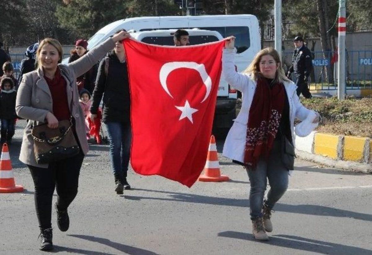 Diyarbakır’da sivil toplum kuruluşları öncülüğünce düzenlenen “Şehitlere Saygı ve Milli Birlik Yürüyüşü”ne katılan vatandaşlar, Türk...