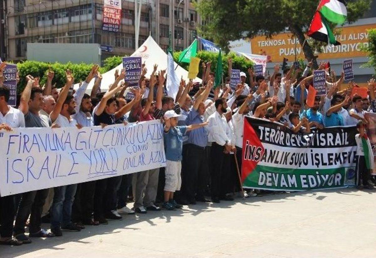 Dünya Kudüs Günü nedeniyle Adana'da çeşitli STK üyeleri, Filistin'e saldırılarını sürdüren İsrail'i protesto etmek için yürüdü.Kemeraltı Camii'nde önce namaz kılan eylemciler, ardından 5 Ocak Meydanı'nda toplandı. İçlerinde kadın ve çocukların da olduğu gruba, camide namaz kılan cemaatten bazıları da eşlik etti. Ellerinde dövizler ve kefene sarılmış bebek figürlerinin olduğu grup, İsrail ve ABD aleyhinde sloganlar atarak ve sık sık tekbir getirerek İsmet İnönü Parkı'na yürüdü. Gruptan Ekrem Özbek isimli bir kişi, Gazze'de katledilen bir bebeğin ölümünden hiçbir şeyin önemli olmadığını belirterek, bugün Dünya Kudüs Günü olduğunu ve Kudüs'ün kan ağladığını ifade etti. “Kudüs'ü sevenler de kan ağlıyor, yüreğimiz yanıyor” diyen Özbek, “Allah yüreğimizi yakanların evlerine ateş düşürsün. O siyonist katiller Gazze'den sağ olarak çıkamaz inşallah. Allah evlerin birliklerini dağıtsın. Allah onları kahrı perişan etsin. Şu Ramazan'ın son cumasında, onların toplu ölümlerini bize ulaştırsın inşallah. Bol bol dua edelim. Dua etmekle de kalmayalım, inşallah elimizden ne geliyorsa yapmaya çalışalım” diye konuştu.Kur'an okunmasının ardından konuşan Salih Demir isimli bir hoca ise saldırıları kınayıp, kıyımlar bitene kadar protestoların şiddetli biçimde sürdürülmesi gerektiğini söyledi. Grup adına basın açıklamasını okuyan Kudüs Platformu Temsilcisi İsa Emre ise yıllardan bu yana saldırıların eksik olmadığı Kudüs'ün, İslamiyet açısından önemini vurguladı. Çocukların yetiştirilirken bilinçlendirilmesi gerektiğini söyleyen Emre, “Yeni doğan çocuklarımıza ilk öğreteceğimiz kelime Allah olmalıdır. İkinci kelime Hz. Muhammed olmalıdır. Üçüncü kelime ise 'Kahrolsun İsrail' ve 'Ölüm Sana İsrail' olmalıdır.”İsa Emre, ABD ilişkilerinin derhal sona erdirilip, ABD büyükelçilerinin ülkeden kovulması gerektiğini ifade ederek, 'Sayın Başbakan'dan icraat beklemekteyiz” ifadesini kullandı. Eyleme, STK üyelerinin yanı sıra, çevredeki vatandaşların da katıldığı görüldü. Basın açıklamasının ardından grup olaysız bir şekilde dağıldı.