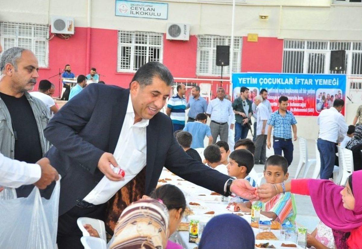 Şanlıurfa’nın Ceylanpınar Belediyesi tarafından Suriyeli Yetim ve Öksüz çocuklara iftar yemeği verildi.Ceylan okulu bahçesinde verilen iftar yemeğinde 250 yetim ve öksüz çocuk ağırlandı. Ceylanpınar Belediye Başkanı Menderes Atilla, iftara katılan çocuklarla tek tek ilgilendi. Çocuklarla uzun süre sohbet eden Başkan Atilla, yetim çocuklara hediye dağıttı. İftarını yetim çocukların arasında açan Başkan Atilla, çocuklarla hatıra fotoğrafı çektirmeyi ihmal etmedi. Etkinlikte bir konuşma yapan Başkan Atilla, kendisinin de 5 yaşında yetim kaldığını belirterek, "Ben 5 yaşındayken babam vefat etti. Ama bugün çok şükür Ceylanpınar Belediyesi’ni yönetiyorum. Demek ki yetim olmak bir eksiklik değildir. Öksüz olmak bir eksiklik değildir. Bu Allah’ın bir emridir ve hepimiz bu emre itaat edeceğiz." diye konuştu. Her yıl Ramazan’ın 15’inde Dünya Yetimler Günü dolayısıyla Suriyeli yetim ve öksüz çocukları bir araya getirdiklerini söyleyen Ceylanpınar Belediye Başkanı Menderes Atilla, "Yetimler ve öksüzler Allah’ın bizlere emanetleridirler. O emanetlere sahip çıkmamız gerekiyor." dedi. İftar yemeğinin ardından Başkan Atilla, Suriyeli çocukları toplayarak çocuklarla oyun oynadı. Başkan Atilla’ya yoğun ilgi gösteren çocuklar zaman zaman "Başkan Atilla" sloganları ile "Erdoğan" sloganları attı. Programın ardından Suriyeli yetimler minibüslere binerek Telhamud Çadır kentine doğru hareket etti. Programa İlçe Kaymakamı Ahmet Karatepe, AK Parti İlçe Başkanı Ahmet Güntekin, İlçe Jandarma Komutanı Binbaşı Ahmet Uzun, Belediye Başkan Yardımcıları katıldı.