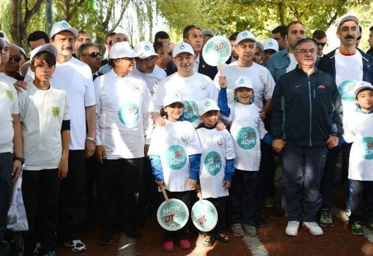 Sağlık Bakanı Recep Akdağ, Türkiye’nin en önemli sağlık sorununun hareketsizlik ve şişmanlık olduğunu vurgulayarak, "Benim de fazla kilolarım var, ben de bugünden itibaren ciddi bir programa başlıyorum. Şu anda 86 kiloyum, planımda da birkaç ay içerisinde en az 10 kilo vermek var"Sağlık Bakanlığı tarafından Dünya Yürüyüş Günü dolayısıyla düzenlenen sloganı “Her Gün 10 Bin Adım” olan yürüyüş etkinlik gerçekleşti.3-4 Ekim Dünya Yürüyüş Günü etkinlikleri kapsamında Etlik Yürüyüş Yolu’nda düzenlenen yürüyüşe Sağlık Bakanı Recep Akdağ, Milli Eğitim Bakanı İsmet Yılmaz, Bahreyn Yüksek Sağlık Konseyi Başkanı Korgeneral Dr. Shaikh Mohammed Bin Abdullah Al Khalifa, Azerbaycan Sağlık Bakan Yardımcısı Elsever M. Agayev, Pakistan Ankara Büyükelçisi? Sohail Mahmood, Keçiören Belediye Başkanı Mustafa Ak ve çok sayıda vatandaş katıldı.Yürüyüşe başlamadan önce bi açıklama yapan Bakan Akdağ, "Her gün 10 bin adım yürümeliyiz ya da 10 bin adıma muadil bir hareket yapmalıyız. İmkanı olanlar, evlerinde ya da spor merkezlerinde egzersiz yapabilirler, yüzme imkanı olanlar yüzebilirler, bisiklete imkanı olanlar bisiklet sürebilirler ama gerçekten en pratik olanı, toplumun büyük bir çoğunluğu için yürümek. Sağlığımız açısından bunu gerçekten çok önemsiyoruz. Bugün bize göre Türkiye’nin en önemli sağlık sorunu hareketsizlik ve şişmanlık. Benim de fazla kilolarım var, ben de bugünden itibaren ciddi bir programa başlıyorum. Şu anda 86 kiloyum, planımda da birkaç ay içerisinde en az 10 kilo vermek var. Toplumun bütün vatandaşlarımızın da ihtiyacı olan bütün kardeşlerimin de bunu başaracağına inanıyorum. Şeker hastalığından tutun, kalp hastalıklarına birçok kansere varıncaya kadar hareketsizlik ve şişmanlık önemli bir sebep" diye konuştu."21. yüzyılı ancak sağlıklı nesillerle inşa edebiliriz"Milli Eğitim Bakanı İsmet Yılmaz ise, "Hayat boyu sağlıklı yaşamak için hareketli olmak lazım. Çağımızın hastalığı nedir? derseniz, muhakkak ki fazla kilodur. Fazla kilo, fazla hastalıklara yol açıyor. 21. yüzyılı ancak sağlıklı nesillerle inşaa edebiliriz. Mesela tüm okullarda önümüzdeki dönemde spor alanında, beden eğitimi alanında çok daha etkin bir şekilde sağlıklı hayata katkıda bulunmaya çalışacağız" ifadesini kullandı.İki Bakan da 4 ay içerisinde 10’ar kilo vereceğini taahhüt etti. 4 ay sonra yine burada olacaklarını kaydeden Bakan Yılmaz, 80’li kilolarda olduğunu belirtti.Bakanlar çocuklarla birlikte el ele yürüdü. Bakan Akdağ, Milli Eğitim Bakanı’nın etkinliğe katılımının çok önemli olduğunu vurgulayarak, "Gelecek nesiller hareket eden, şişmanlamayan, sağlığını daha iyi koruyan nesiller olarak göreceksek bu okullarımızda olacak, çocuklarımızla olacak. Bizim için de zaman geçmiş değil, biz de gayret ediyoruz Bakanımızla birlikte onun için söz verdik ama gelecek yavrularımızla olacak onun için onlarla beraberiz" dedi.Bakan Akdağ, 10’ar kilo vermeye söz verdiklerini ve bu yürüyüşlerin devam edeceğini bildirerek, katılımı mükemmel bulduğunu söyledi."Bakanımla ikimiz 4 ay içerisinde 10’ar kilo verme kararı aldık"Bitiş çizgisine gelen çocuklar, hep bir ağızdan ’Her gün 10 bin adım’ dedi.Bakan Akdağ da, "Milli Eğitim Bakanımızla beraber bugün kendimize kilo verme konusunda birer hedef koyduk. Eğer topluma bunun bir ihtiyaç olduğunu söylüyorsak, kendi ihtiyacımızı da en başta ortaya koymak ve bunun için de toplumu bilgilendirmek doğru olur diye düşünüyoruz. Dolayısıyla değerli Bakanımla ikimiz 4 ay içerisinde 10’ar kilo verme kararı aldık. Çok kolay değil, bizim çalışma tempomuzda gerçekten bu çok zor. Eğer bunu biz başarırsak toplum da herkes başarabilir. Çünkü çok uzun süreler, günde 12-14 saat, haftada 7 gün genellikle oturarak, toplantılarla çalışıyoruz. Bu şekildeki çalışma temposu kilo almak için çok müsait, çok gayret edeceğiz. Az yiyeceğiz, çok hareket edeceğiz ama Allah’ın izniyle bunu başaracağız. Toplumda kilo fazlası olan, ihtiyacı olan bütün kardeşlerimizin de bunu başaracağına inanıyoruz. Bugünden itibaren herkes kendisine böyle bir hedef koyabilir" açıklamasını yaptı."Türkiye’nin yarını bugünden daha iyi olacak, daha sağlıklı günler bizi bekliyor""Günde 10 bin adım sağlıklı yaşam için mutlaka bir farkındalık oluşturmak gerekirdi" diyen Bakan Yılmaz şunları kaydetti:"Sağlık Bakanımızın öncülüğünde bugün bu farkındalığı oluşturuyoruz. Sağlıklı yaşam, mutlu yaşam. Sağlıklı yaşam, huzurlu yaşam. Gereğinden fazla yük taşımamak içn mutlaka kilolardan kurtulmak lazım. Fazla kilolar insanı yorar, yıpratır, yapmak istediklerini de yapamaz hale getirir. Dolayısıyla günde 10 bin adım ideal, bu idealin üzerine çıkan da olabilir, altında kalan da olabilir ama altında kalanın bir sonraki gün bunu telafi etmesi lazım. İlk üç katta evi olanların mümkünse zorunlu kalmadıkça asansörü kullanmaması lazım. Evine veya okuluna 10 bin adımdan daha yakın olanların servisi kullanmaması lazım, yürüyerek gidip gelmesi lazım. Türkiye’nin yarını bugünden daha iyi olacak, daha sağlıklı günler bizi bekliyor."