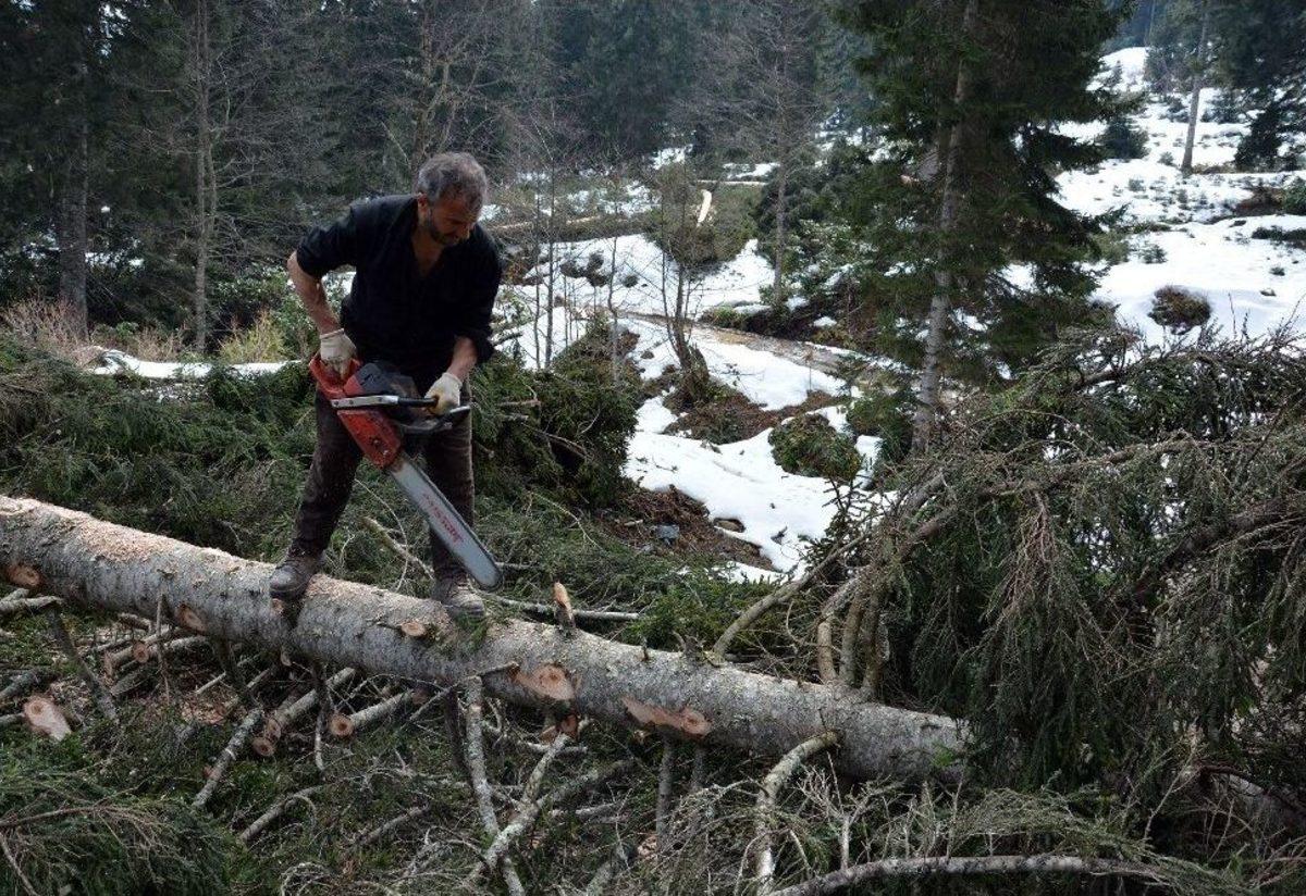 Ordu’da geçimlerini ormandan kazanan işçiler, zorluklara aldırış etmeden çalışıyor.Kabadüz ilçesinde ormanda çalışan işçiler, Orman İşletme Müdürlüğünün belirlediği ağaçların kesiminde çalışarak ekmeklerini kazanıyor. Ormanda, işçilerin sabahın erken saatlerinde başladığı yoğun mesainin ardından tomruk haline getirilen ağaçlar, orman işletmesine teslim ediliyor.Ormanda çalışan Gültekin Aydoğan, bütün zorluklara rağmen işlerini severek yaptıklarını söyledi. Orman İşletme Müdürlüğünün belirlediği ağaçların kesimini yaptıklarını belirten Aydoğan, "İşimiz insanı zorlayan ağır bir iş. Ancak burada çalışan hepimiz işimizi bütün zorluğuna rağmen severek yapıyoruz. Orman İşletme Müdürlüğünün belirlediği yaşlı hastalıklı ağaçları keserek geriden gelen fidanların büyümesini sağlıyoruz" dedi.Eşi ile birlikte ekmeğini ormandan kazanıyorErkeklerin dahi çoğu zaman zorlandığı ağaç kesim işini eşiyle birlikte yapan Sevim Tepe, alın teriyle ekmeğini kazanmanın mutluluğunu yaşıyor. Eşi ile birlikte ormanda çalıştığını ifade eden Sevim Tepe, "Ekmeğimiz için çalışıyorum. Bu işlere çocukluğumdan beri alışkınım. Eşimle birlikte çalışmaktan çok mutluyum" diye konuştu.