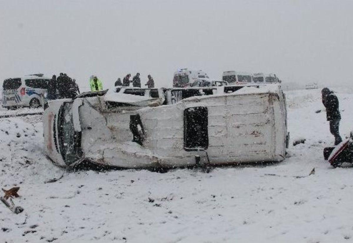 Elazığ’da kar yağışı nedeniyle sürücüsünün direksiyon hakimiyetini kaybettiği yolcu minibüsü şarampole devrildi. Kazada minibüs altında sıkışan ağır yaralıyı yoldan geçen sivil araçtaki askeri personel kurtardı, ancak onların da aracına başka bir minibüs çarptı. Her iki kazada toplam 18 kişi yaralandı.Kaza, Elazığ-Bingöl karayolunun 20. kilometresinde meydana geldi. Edinilen bilgiye göre, Tunceli’den Elazığ’a yolcu taşıyan Özcan Ağ idaresindeki 62 AC 889 plakalı minibüs, kar yağışı nedeniyle kayganlaşan yolda sürücüsünün direksiyon hakimiyetini kaybetmesi sonucu yoldan çıkarak şarampole devrildi. Kazada minibüste bulunan 15 kişi yaralandı. Yaralılardan biri minibüs altında sıkıştı. Kazayı gören sivil askeri araçtaki personel durarak yardıma koştu ve yaralıyı kurtardı. Ancak sivil askeri araca da Bingöl’den Elazığ’da giden 12 AR 52 plakalı başka bir yolcu minibüsü çarptı. Bu kazada da minibüste bulunan 3 kişi yaralandı.Her iki kazada yaralanan 18 kişi, olay yerine sevk edilen çok sayıda ambulansla kentteki hastanelere kaldırıldı.