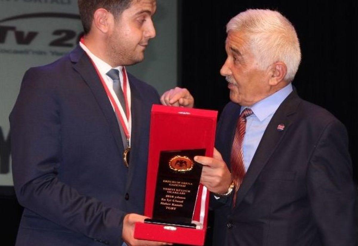 Erzurum Erenleri ödülleri sahiplerini buldu. Erzurum Arena ve Yesevi Kültür Ocakları iş birliği ile düzenlenen ödül gecesinde en iyi haber kanalı ödülü TGRT Haber’e verildi.Erzurum’un ulusal anlamdaki ilk ödül gecesi Cemal Reşit Rey Konser Salonunda gerçekleştirildi. Geceye Narman Belediye Başkanı Yücel Ahmet İşleyen, Erzurumspor Başkanı Ali Demirhan başta olmak üzere çok sayıda Erzurumlu katıldı. Modacı Yeşim Erbek’in ’7’den 70’e Teröre Hayır Defilesi’ düzenlendiği gecede sahne alan Halk Müziği sanatçısı Aysun Gültekin Erzurumlulara keyifli anlar yaşattı.En iyi haber kanalı TGRT HaberGecenin sonunda Erzurum basınından Erzurum Arena ve Yesevi Kültür Ocakları iş birliği ile düzenlenen “Erzurum Erenleri” ödülleri sahiplerini buldu. 19 kategoriden oluşan ve SMS oylarıyla düzenlenen ankette onbinlerce oy kullanıldı. Bürokrasi, sanat, spor, STK dünyasından bir çok ismin adayları arasında bulunduğu ödül töreninde TGRT Haber, en iyi ulusal haber kanalları dalında ödül almaya layık görüldü. Gecede TGRT Haber adına ödülü muhabir Emir Kaan Kalyoncu aldı.Ödülden dolayı mutluluğunu dile getiren Kalyoncu, “Gerçekten çok güzel bir etkinlik ve organizasyona imza attınız. Bu önemli ödülü bize layık gördüğünüz için çok onure olduk. Bugün TGRT Haber’i temsilen buradayım. Kurumum ve şahsım adına bu ödülü bize layık gördüğünüz için tekrardan şükranlarımı sunuyorum’’ diye konuştu.