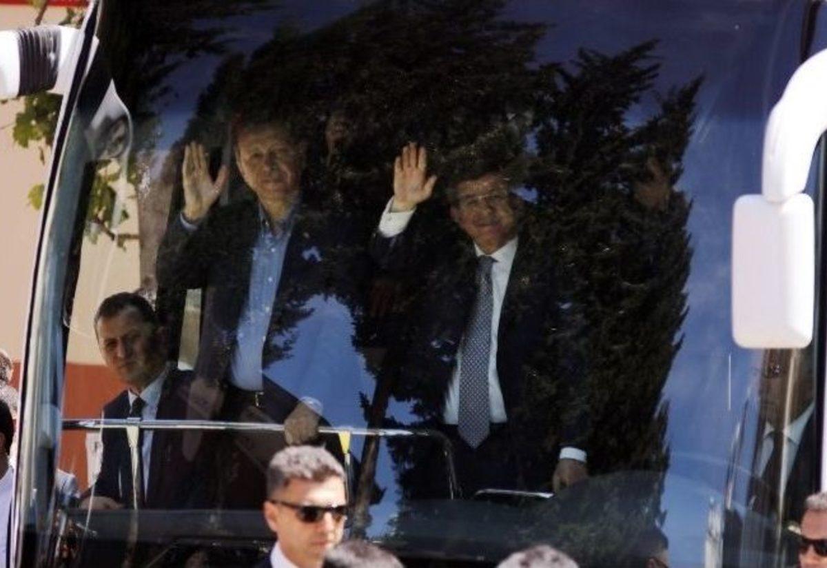 Toplu açılış için Antalya’ya gelen Cumhurbaşkanı Recep Tayyip Erdoğan ve Başbakan Ahmet Davutoğlu, cami çıkışında...