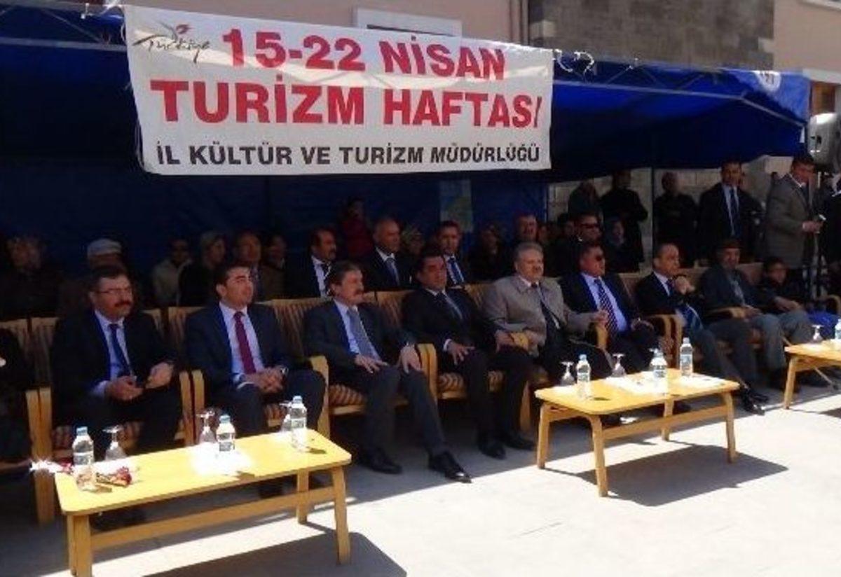 15-22 Nisan Turizm Haftası kutlamaları Erzincan’da çeşitli etkinliklerle devam ediyor.Erzincan İl Kültür Turizm Müdürlüğü tarafından düzenlenen Turizm haftası kutlamaları Ordu Caddesi üzerinden Erzincan Belediyesine ait Mehter Takımının Erzincan Belediyesi kültür evine olan yürüyüşüyle başlatıldı.Düzenlenen kutlama törenine Erzincan Valisi Süleyman Kahraman, Vali Yardımcısı Fatih Kaya, Erzincan Belediye Başkan Vekili Hüseyin Karakaş, Erzincan Üniversitesi Rektörü Prof. Dr. İlyas Çapoğlu, Erzincan Cumhuriyet Başsavcısı Hüsnü Aldemir, İl Emniyet Müdürü Doğan İnci, Erzincan Halk Sağlığı Müdürü Dr. Mehmet Oğuz Çetin ve Erzincan halkı katıldı.Erzincan Belediyesi kültür evi arkasında ki alanda düzenlenen kutlama etkinliği Saygı duruşu ve İstiklal Marşı’nın okunmasıyla başlayıp Erzincan Belediyesi Folklor Ekibinin sergilediği halk oyunları gösterisiyle devam etti.Program akışı ile birlikte daha sonra İl Kültür ve Turizm Müdürü Metin Çankaya günün anlamına binaen yaptığı konuşmada şu görüşlerde bulundu; “Turizm ülkeleri ve toplumları kaynaştıran kalkınmanın anahtarı ve sevgi ocağıdır. Ülkenin doğal güzelliklerini, ekonomik özelliklerini ve tarihini, kültürünü tanıtan en önemli sanayi ve endüstri kollarından biridir. Turizm alanında artan talepleri karşılamak, çağdaş düzeyde hizmet veren kaliteli tesis nitelikli personel ve bozulmamış doğal güzellikleri ile kültürel ve tarihi zenginliklerimizi arz etmekle mümkün olacaktır.” dedi.Çankaya’nın konuşmasının ardından daha önce gerçekleştirilen yemek yarışmalarında dereceye girenlere ödülleri verildi. Yarışmalarda birinci olanlara yarım altın, ikinciye çeyrek altın ve üçüncü olanlara gram altın verilirken ödül töreni sırasında yarışmalarda başarı gösteren vatandaşlara ödül olarak vaat edilen yarım altını tören sunucunun tam altın olarak yanlış söylemiş olması üzerine Erzincan Valisi Süleyman Kahraman “söz ağızdan bir kere çıkar” diyerek tam altın ödülünü Erzincan Valiliği tarafından karşılanacağı sözünü vermesi üzerine bu davranışı ile vatandaşın büyük takdirini topladığı görüldü.Kutlama etkinliğinde Erzincan Turizminde yer alan çeşitli doğa sporları sergisi de sunulurken düzenlenen program ödüllerin verilmesinin ardından ikram ile sona erdi.
