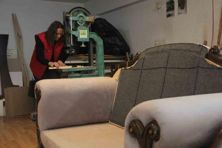 Öztürk, “Koltuk döşeme atölyem var, tamirat ve imalat yapıyorum. Ben bu mesleğe ilk olarak eşime yardım olsun diye başladım. İlk olarak iş yerini bekleme, müşteri karşılama, koltuk sökme gibi işlemler yaptım. Sonrasında elimin yatkın olduğunu gördüm. Eşime destek olmak isterken işin ortasında kendimi buldum. Gayet de güzel oldu” diye konuştu.