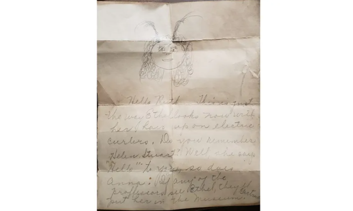 Mektupta şöyle yazıyor: "Merhaba Ruth. Ethel'in saçları elektrikli bukle makinesinde toplanmış halinin aynısı şimdi böyle görünüyor. Helen Stuart'ı hatırlıyor musun? O sana 'Merhaba' diyor, Anna da öyle. Profesörlerden herhangi biri görürse Ethel, onu müzeye koyacaklar."