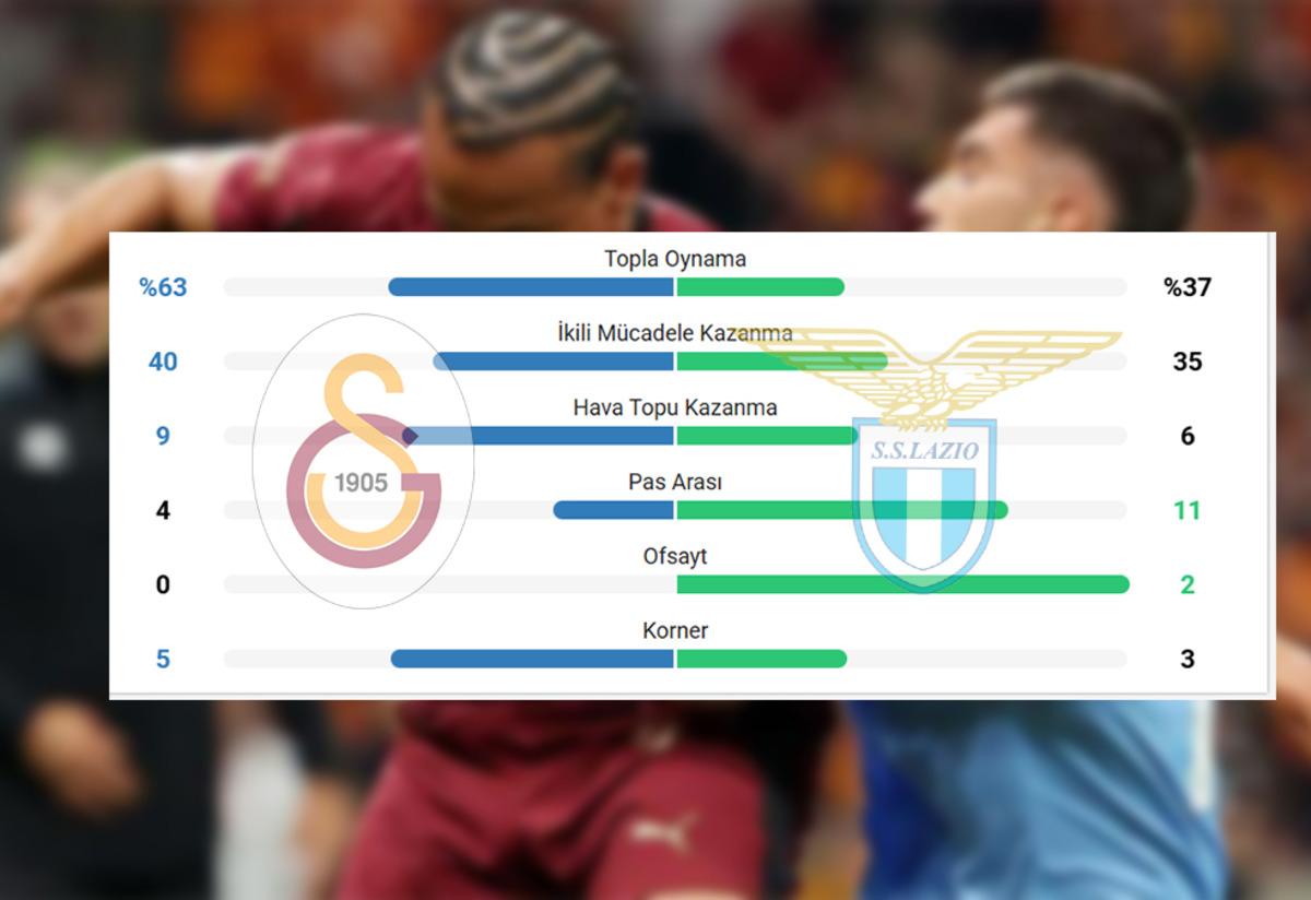 Buna göre Lazio karşısında Fenerbahçe %54'lük topa sahip olma üstünlüğü ile maçı tamamlarken Galatasaray %63'lük bir topa sahip olma üstünlüğü ile oynadı.
