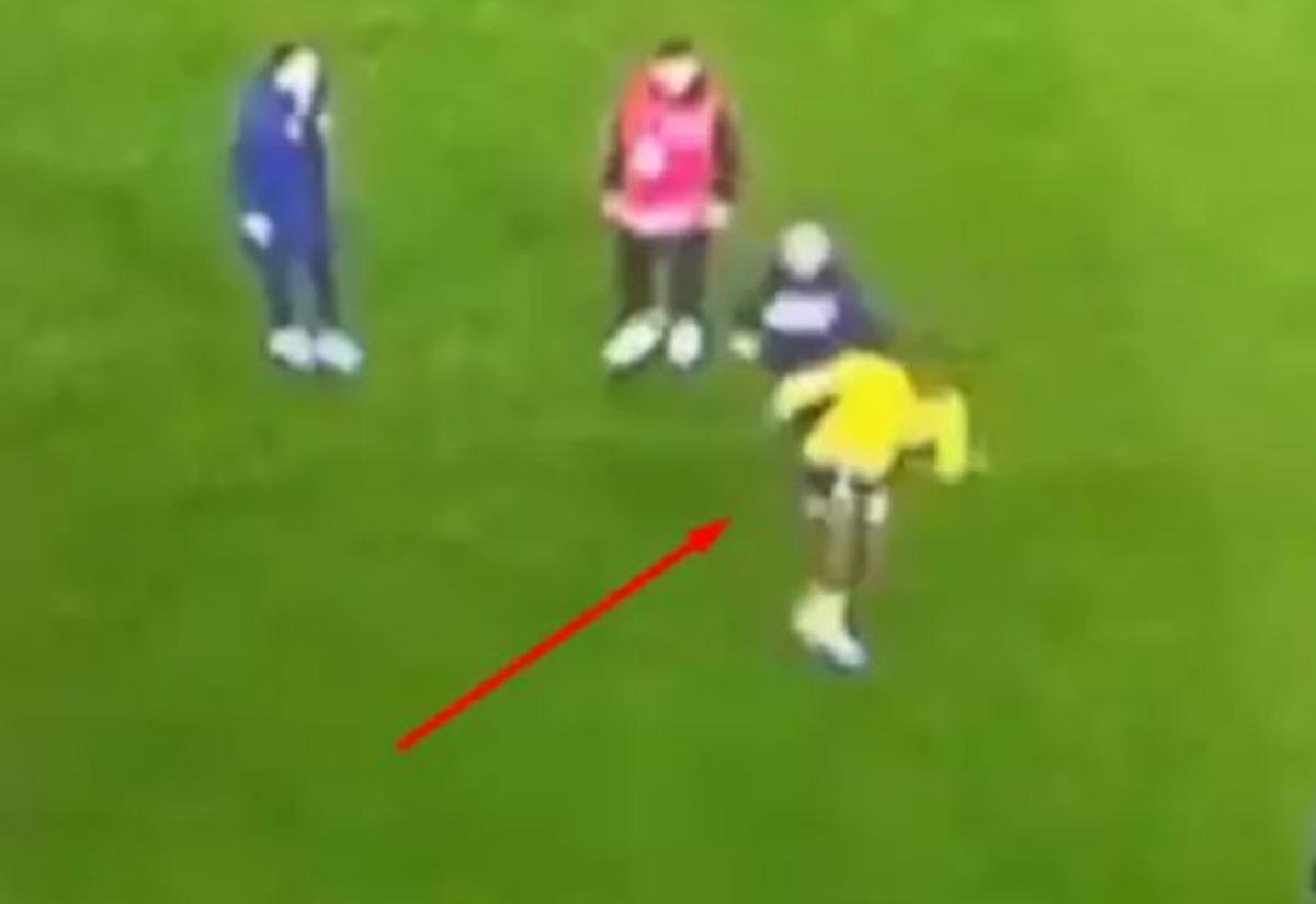 Fenerbahçeli Michy Batshuayi sahaya giren bir Trabzonsporlu taraftarı döner tekmeyle engellemeye çalıştığı anlar sosyal medyada gündem oldu.