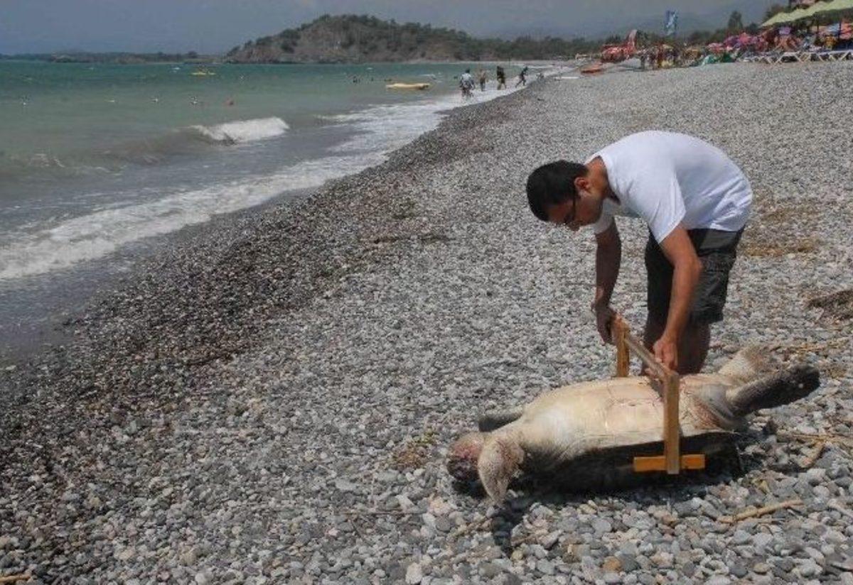 Muğla'nın Fethiye ilçesinde, balık ağına takılarak öldüğü tahmin edilen Chelonia Mydas (Yeşil Kamlumbağa) cinsi caretta caretta kaplumbağası ölmüş vaziyette sahile vurdu.Fethiye'nin koca çalış plajındaki Sörf Kafe karşısında denizin içerisinde ölmüş vaziyette Chelonia Mydas cinsi caretta caratta kaplumbağası gören vatandaşlar durumu hemen çalış plajındaki kaplumbağa koruma gönüllülerine bildirdi. Ankara Hacettepe Üniversitesi ve Avusturya Viyana Üniversitesinden gönüllüler koşarak olay yerine geldi. Dişi ve ergin vaziyetteki 75 cm boyunda olan Chelonia Mydas cinsi kaplumbağanın ölüm nedenini araştıran gönüllüler vücuttaki yaraların balıkçı ağlarından meydana gelmiş olabileceğini tespit ettiler. Fethiye Belediye temizlik işçilerinden yardım istenirken sahile ölü kaplumbağanın vurduğunu gören turistler bu anı üzüntü ile izledi. Kimi turistler bol bol fotoğraf çekerken Fethiye Belediyesi temizlik işçileri ölü kaplumbağayı bir çöp torbasına koyarak kamyona yükleyip, Çatalarık mevkiinde toprağa gömdü.Hacettepe Üniversitesi son sınıf öğrencisi Metin Demirel, kıyıya ölü vaziyette vuran kamlumbağanın deniz dibindeki yeşil bitkilerle beslenen Chelonia Mydas yani yeşil kamlumbağa olduğunu belirterek "Muhtemelen balıkçıların attığı ağlara dolandığı için, bu kamlumbağa yaralar alarak ölmüştür. Vücudundaki ve başındaki yaralar bunu gösteriyor. Bize ihbar gelince Viyana Üniversitesinden arkadaşlarla gelip incelemede bulunduk" dedi.Demirel, sözlerini şöyle sürdürdü: "Gönüllü öğrencilerle Fethiye Çalış Plajı ve Yanıklar Sahilinde bu güne kadar 60'n üzerinde caretta yuvası ve 360 civarında yavru tespit ettiklerini üreme için son günler olduğunu kısa sürede yuvadan yavru çıkışlarının başlayacağını özellikle ışıklar, balıkçı ağları ve sörf araçları kaplumbağalar için tehlike arz eden hususlar"
