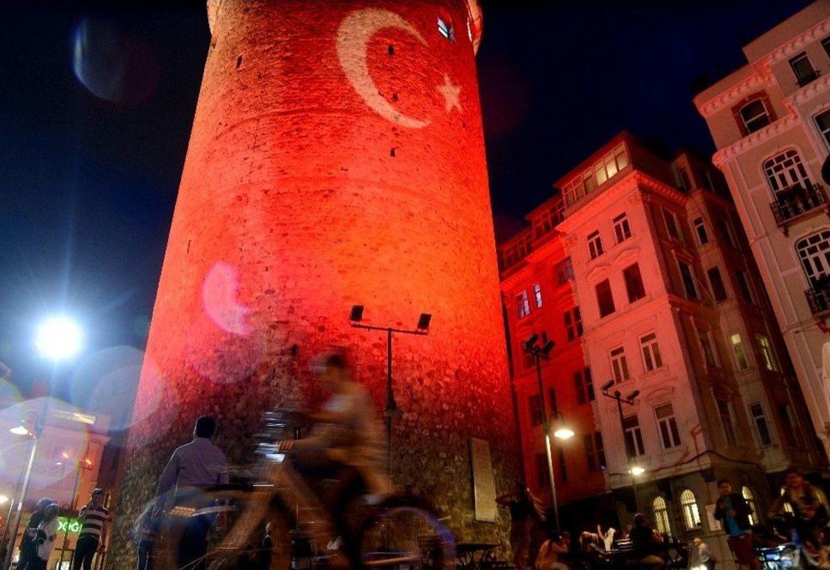 15 Temmuz Demokrasi ve Milli Birlik Günü kapsamında Galata Kulesi’ne Türk bayrağı yansıtıldı.İstanbul’un sembolleri arasında yer alan tarihi Galata Kulesi, 15 Temmuz darbe girişiminin yıl dönümünde ışıklandırıldı. İstanbul Büyükşehir Belediyesi tarafından yapılan aydınlatmayla Galata Kulesi’ne Türk bayrağı yansıtıldı. Kırmızı beyaza bürünen tarihi kuleye vatandaşlar da yoğun ilgi gösteriyor.