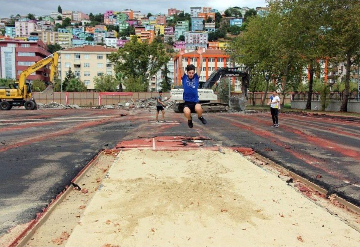 Geçici Olarak Yapılan Atletizm Isınma Sahası Yıkılıyor