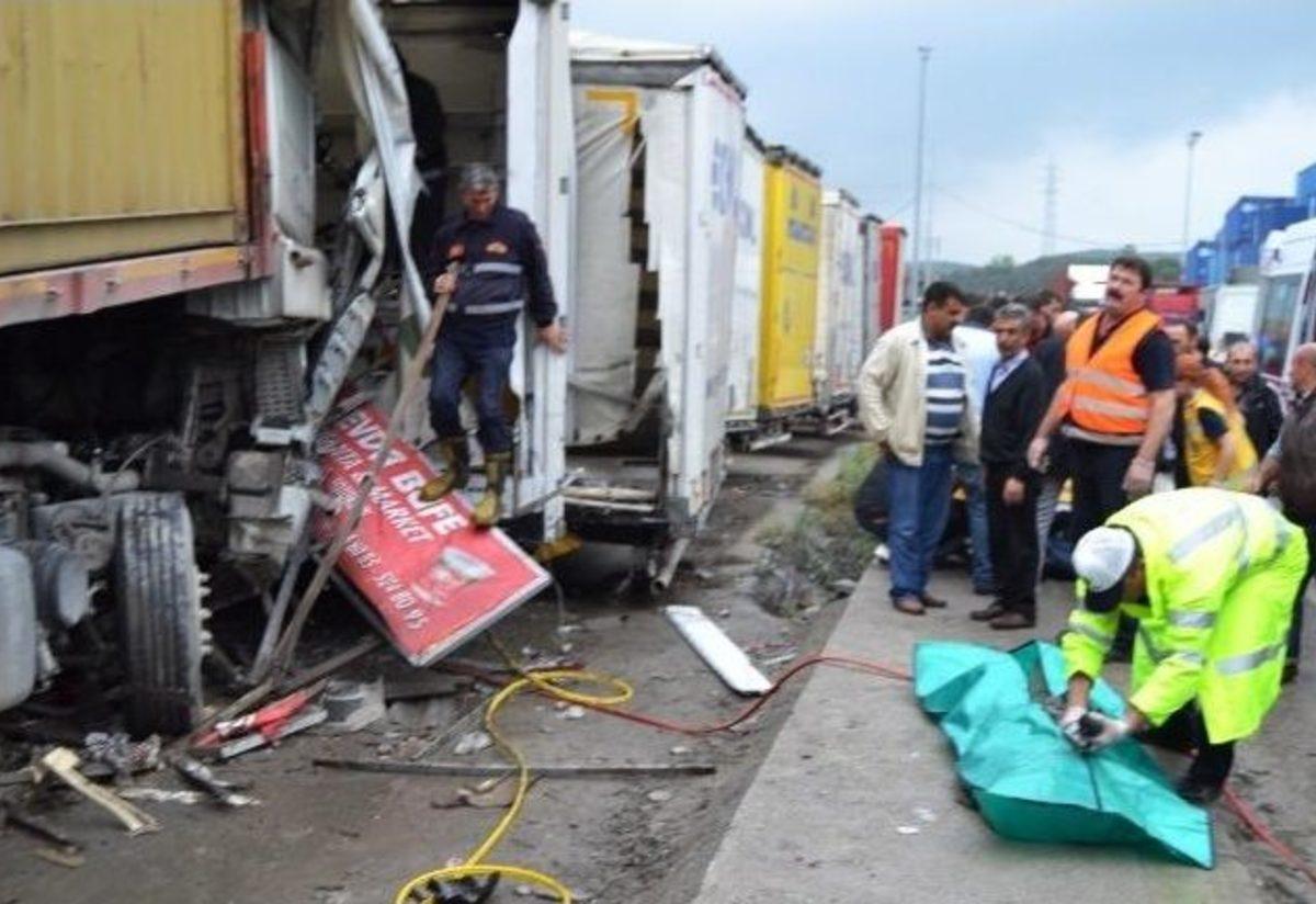 Bursa’nın Gemlik ilçesinde Gümrük ve Liman İşletmeleri bahçesine giren TIR, ortalığı savaş alanına çevirdi. 4 kişiye çarpan TIR, bahçedeki dorselere çarparak durabildi. Kazada 2 kişi ölürken, 3 kişi de yaralandı.Kaza, akşam 18.30 sıralarında meydana geldi. Edinilen bilgiye göre, Necatı Uçtu idaresindeki 01 R 2188 plakalı TIR, Gemlik Gümrük Müdürlüğü’nün karşısında bulunan çay ocağı ve özel işletmelerin bulunduğu binanın bahçesine daldı. Bahçedeki kapalı çay ocağını dağıtan TIR, Gümrük binası önünde telefon satan Şehmuz Günel, Hakan Özaydın, Orhan Hacıoğlu ve Fatih Akdeniz’e de çarptı. TIR, park halindeki 34 EB 5661 plakalı dorseye çarparak durabildi. Kazada yaralanan Hakan Özaydın, Orhan Hacıoğlu ve Fatih Akdeniz 112 Acil Servis ambulansı ile Gemlik Devlet Hastanesi’ne kaldırılırken, ağır yaralanan Şehmuz Günel ise olay yerinde hayatını kaybetti. TIR’ın dorsesine sıkışan sürücü Necati Uçtu’nun cenazesi de, itfaiye arama kurtarma ekiplerince çıkarıldı. Gemlik Nöbetçi Cumhuriyet Savcısı’nın olay yerinde yaptığı incelemenin ardından cenazeler Gemlik Muammer Ağım Devlet Hastanesi’ne, buradan da kesin ölüm sebeplerinin tespiti için Bursa Adli Kurumu’na kaldırıldı.Kazayla ilgili çevrede bulunanların ifadesine başvurulurken, soruşturma devam ediyor.
