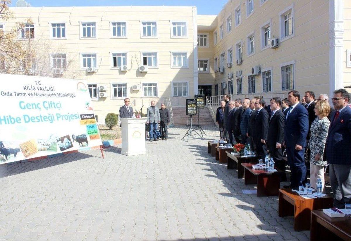 Kilis’te Gıda Tarım ve Hayvancılık İl Müdürlüğü tarafından 18 çiftçiye 2’si erkek 38 dişi olmak üzere 720 küçükbaş koyun dağıtıldı.Gıda Tarım ve Hayvancılık İl Müdürlüğü bahçesinde gerçekleştirilen Genç Çiftçi projesi kapsamında koyun dağıtım törenine Kilis Valisi İsmail Çataklı, Kilis Belediye Başkanı Hasan Kara, Gıda Tarım ve Hayvancılık İl Müdürü Songül Kadıoğlu, daire amir ve müdürleri ile davetliler katıldı.Gıda Tarım ve Hayvancılık İl Müdürü Songül Kadıoğlu, törende yaptığı konuşmada, Genç Çiftçi projesi kapsamında küçükbaş hayvanların dağıtmak üzere toplandıklarını ifade ederek, “Milli Tarım projesi kapsamında gerek hayvancılık, gerekse bitkisel üretimle ilgili projelerimiz artarak devam etmektedir. Tarım ülkemizin ihmal ed6ilmeyecek önemli bir sektörüdür. Hepimiz 4 elle toprağımıza sarılmak zorundayız. Ekilmedik bir karış toprağımız kalmaması gerekir. Ne oldu bize ben anlamıyorum. Sanki hiç birimizin geçmişi köye dayanmıyormuş gibi davranıyoruz. Özellikle gençler köyden koşa koşa şehre geliyor. Bu durum da köylerimiz ne olacak, soframızdaki yağımız, peynirimiz, ekmeğimizi kim getirecek. Onun için işte tam bu noktada bu proje ile köylerimizde gençlerimizin üretim yapmasını, para kazanmasını sağlıyor. Bundan sonrada projelerimiz devam edecek” dedi.Kilis Belediye Başkanı Hasan Kara ise köylerde kimse kalmadığını ifade ederek, “Eskiden köylerde evlerde bekçi olarak ya bir yaşlı kişi yada çocuklar kalırdı. Onlarda evleri beklerdi. Herkes tarlaya veya arazide çalışmaya giderdi. Her şey toprağa bağlı, topraktan gelir elde etmediğimiz sürece, bu toprağa sahip çıkmadığımız sürece sonumuz çok iyi değil, şehre gelelim, iş kuralım ama asla köyümüzden vazgeçmeyelim” dedi.Vali İsmail Çataklı’da yaptığı konuşmada, geçen yıl 2 bin 549 başvuru olduğunu ifade ederek, “104 projeye destek verdik. Toplam 3 milyon 120 bin TL’lik hibe desteği sağladık. Bugündü bu kapsamında 18 çiftçimize 38 dişi 2 erkek 40 tane çiftçi başı olmak üzere 720 adet merinos ırkı koyun dağıtıyoruz. Şimdiden bu hayvanlarımızın çiftçilerimizin evlerine hanelerini bolluk bereket getirmesini diliyorum. Hem siz hemde ülkemiz kalkınsın” diye konuştu.Daha sonra kurayla koyunların sahipleri belirlenerek temsili dağıtımları yapıldı.