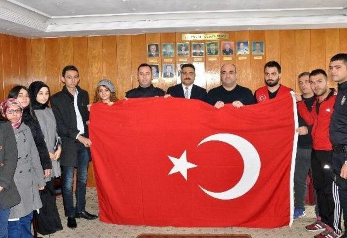 Kahramanmaraş’ta, Elbistan Gençlik Merkezi’ne üye gönüllü gençler, İstanbul’daki terör saldırısının ardından başlatılan ‘polisimizin yanındayız’ kampanyası...