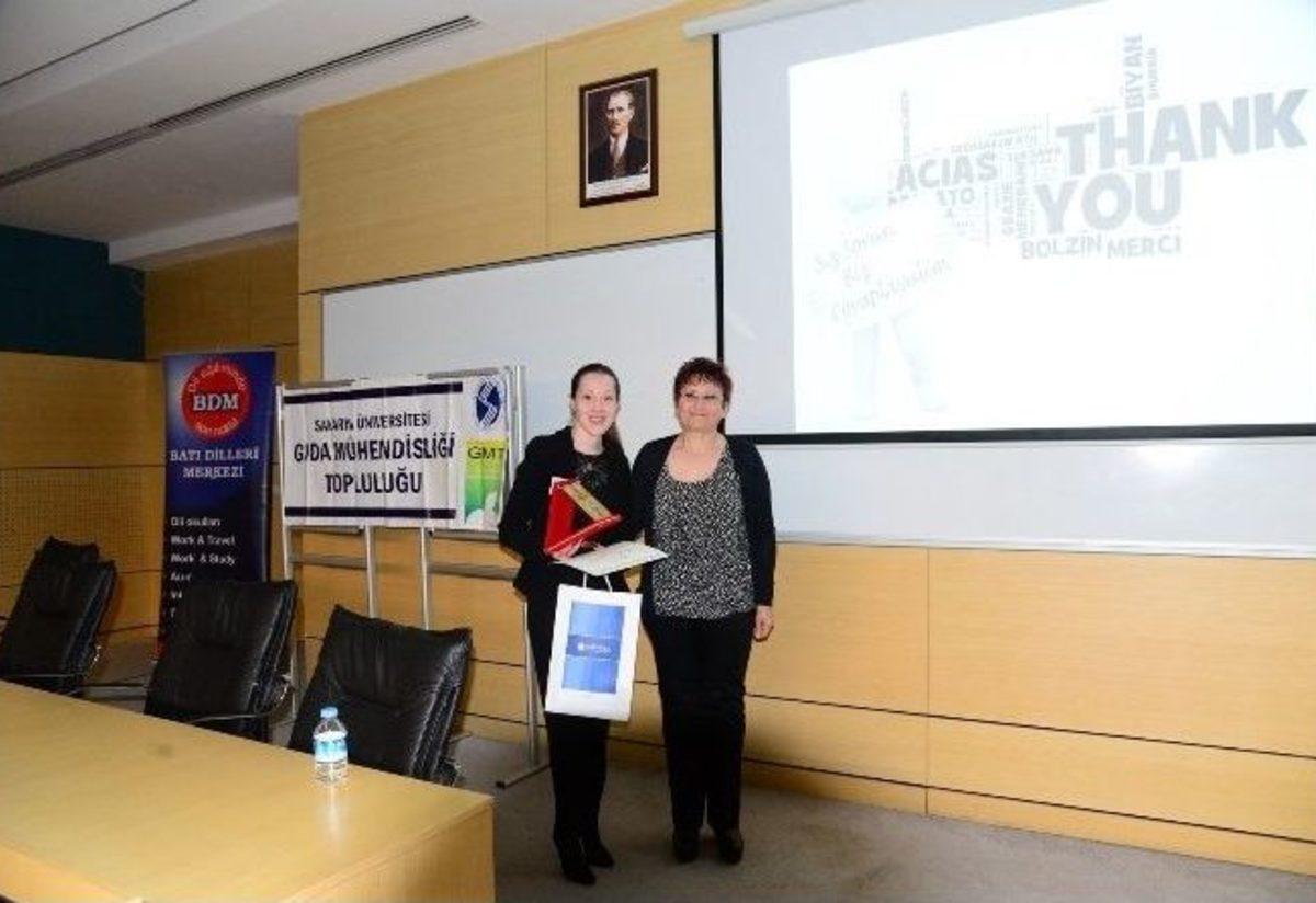 Bu yıl 5’ncisini düzenlenen ‘Gıda Mühendisliği Günleri’, SAÜ Kültür ve Kongre Merkezi’nde gerçekleştirildi.Sakarya Üniversitesi(SAÜ) Gıda Mühendisliği Topluluğu tarafından bu yıl 5’incisi düzenlenen Gıda Mühendisliği Günleri, SAÜ Kültür ve Kongre Merkezi’nde gerçekleştirildi. Açılışını SAÜ Mühendislik Fakültesi Dekan Yardımcısı Doç. Dr. Yılmaz Uyaroğlu, Gıda Mühendisliği Bölüm Başkanı Prof. Dr. Ahmet Ayar ve Gıda Mühendisliği Topluluğu Akademik Başkanı Yrd. Doç. Dr. Gökçe Polat Yemiş’in yaptığı ‘5’nci Gıda Mühendisliği Günleri’ etkinliğine, Kromel Satış Müdürü Şevket Çalışkan ve Genel Koordinatör Fatih Üreten, Aromsa firmasından Doç. Dr. Aslı Barla Demirkoz ve Duyusal Analiz Uzmanı Özlem Özarda, Döhler Pazarlama Müdürü Hakan Şen ve İnsan Kaynakları Müdürü Nalan Yavuzcan konuşmacı olarak katıldı.10 yıl önce 40 bin avroya alınabilen süt tankını günümüzde çok daha uygun fiyatlarla üretiminin yapıldığını belirten Kromel Satış Müdürü Şevket Çalışkan, “Kromel firması olarak, ülkemizin ekonomisine katkı sağlıyoruz. Yurt dışından büyük paralar ile ithal edilen tankları, yerli sermaye ile ülkemizde üretiyoruz. Bu üretimle beraber, para ülkemizde kalıyor. İthalatı kesiyoruz” dedi. Daha önceleri 100 ton sütü işlemek için 70-75 kişiye ihtiyaç duyulduğunu ifade eden Çalışkan, yapılan Ar-Ge çalışmaları ile 15 kişiye kadar düşürüldüğünü ve daha hijyenik ortamlarda ürün elde edildiğini söyledi.Yoğurdu Türklerin bulduğunu belirten Çalışkan, “Yoğurdu biz bulduk ama biz ihraç edemiyoruz. Biz yoğurdu yemekle beraber yerken, Avrupalılar yemekten sonra tatlı niyetine yiyor” dedi. Çalışkan, gıda mühendisliği öğrencilerine, sütün tüm çeşitlerini bilmelerini ancak bir alanda uzmanlaşmaları tavsiyesinde bulundu.Aroma vericiler hakkında bir sunum yapan Aromsa Duyusal Analiz Uzmanı Özlem Özarda, aroma vericilerin ne işe yaradığı, hangi alanlarda ve neden kullanıldığı hakkında çeşitli bilgileri SAÜ’lü öğrenciler ile paylaştı. Aroma vericilerin gıda katkı maddesi statüsünde yer almadığını söyleyen Özarda, aromanın, gıdalara belirli bir koku ve tat kazandırılması ve sahip olduğu tadı daha da kuvvetlendirmesi amacı ile kullanıldığını ifade etti. Özarda, “Aromalar kullanılarak, son üründeki istenmeyen tat ve kokuları maskeliyoruz. Bölgesel ve sezonluk lezzet değişikliklerini dengeliyoruz. Yağ, şeker ve tuz gibi istenmeyen bileşenlerin azaltılması nedeni ile kaybedilen lezzeti gıdaya geri kazandırıyoruz” dedi.Gıda Mühendisliği Günleri’nin ikinci oturumuna ise Sakarya Üniversitesi Gıda Mühendisliği Bölümü mezunları Reyhan Koyuncu, Sezen Demir, Selami Yıldız ve Melek Yıldız konuşmacı olarak katıldı. Bölüm mezunu mühendisler, SAÜ’lü öğrencilere iş hayatında nelere dikkat edilmesi, karşılaştıkları durumlar gibi konular üzerine deneyimlerini aktardı.