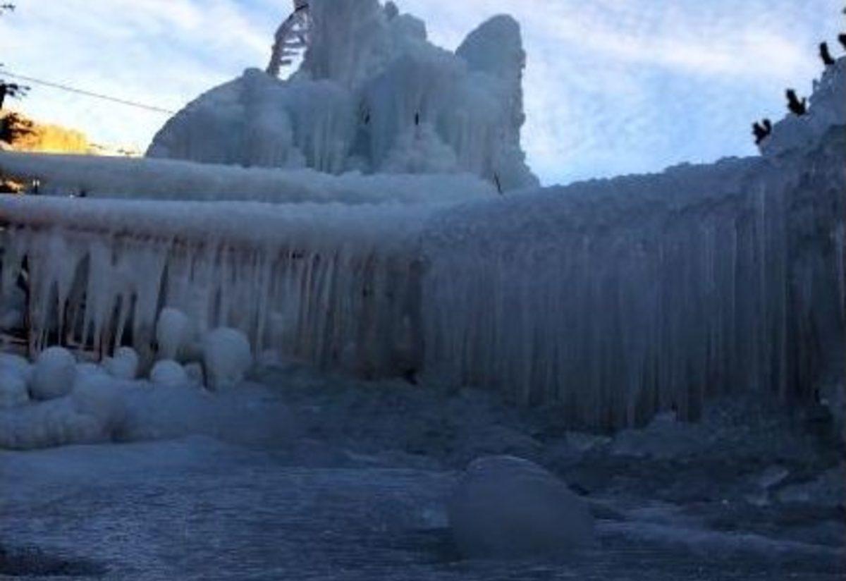 Gümüşhane kent merkezinin en büyük mezarlığı olan Emirler Mezarlığı’nda su borusu patlayınca havaya sıçrayan sulardan devasa buz kütleleri oluştu.Olay, geçtiğimiz günlerde bir vatandaşın mezarlığının bitişiğindeki musluğun aşırı soğuk hava nedeniyle patlaması sonucu meydana geldi. Geceleri hava sıcaklığının sıfırın altında 15 derecelere kadar düşmesi nedeniyle mezarlık ve etrafındaki ağaçların üzerine kadar sıçrayan su taneleri donunca ortaya buzdan devasa yapıtlar çıktı. Belediye yetkililerinin patlayan boruyu tamir etmelerine rağmen soğuk havaların etkisini sürdürmesi nedeniyle erimeyen buz kütlesi ise ilginç görüntüler oluşturdu.Akrabalarının mezarlığını ziyaret etmek isteyen vatandaşlar gördükleri bu manzarayı şaşkınlıkla karşılarken, Belediye yetkilerinin tamiratını yaptıkları alanda ki devasa buz kütlelerini önümüzdeki günlerde kıracağı öğrenildi.