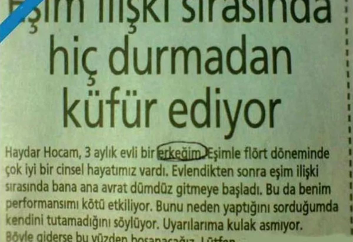"3 aylık evli bir erkeğim. Eşim ilişki sırasında ana avrat küfür ediyor"