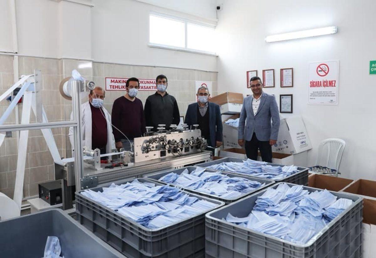 Koronavirüs (Covi-19) salgınından korunmada en çok ihtiyaç duyulan kişisel koruyucu maskelerin üretildiği Maske Üretim Atölyesi’ni ziyaret ederek incelemelerde bulunan Başkan Prof. Dr. Alim Işık, burada tesisin işleyişi ile ilgili yöneticilerden detaylı bilgi aldı.
