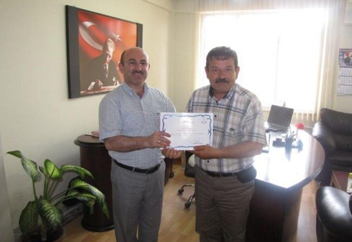 Cumhuriyet Ortaokulu Müdürü Ali Bütün’ü 2011 - 2012 Eğitim Öğretim yılında gösterdiği başarılı çalışmalarından dolayı, Cumhuriyet Ortaokulu Fen ve Teknoloji Öğretmeni Emel Maden’i “Bu Benim Eserim Proje” Yarışması’ndaki ülke çapındaki başarısından dolayı, Cumhuriyet Ortaokulu İngilizce Öğretmeni İsmail Aydın’ı ITEC Projesinde ülke çapındaki başarısından dolayı, Atatürk İlkokulu Beden Eğitimi Öğretmeni Mustafa Tekin’i Badminton dalında elde ettiği başarısından dolayı ve Atatürk İlkokulu Müzik Öğretmeni Oğuzhan Kavukçu’yu müzik dalında göstermiş olduğu özverili çalışmalarından dolayı makamında kabul ederek Teşekkür Belgesi ve çini tabak ile ödüllendiren İlçe Milli Eğitim Müdürü İlhan Cebeci, “Fedakarca çalışan, büyük bir özveri ve heyecanla görev yapan sizleri kutluyor, başarılarınızın devamını diliyorum” dedi.