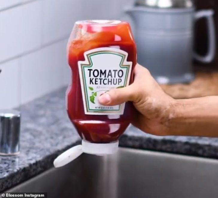 Görselde lavaboya kalın bir ketçap tabakası sürülüyor.