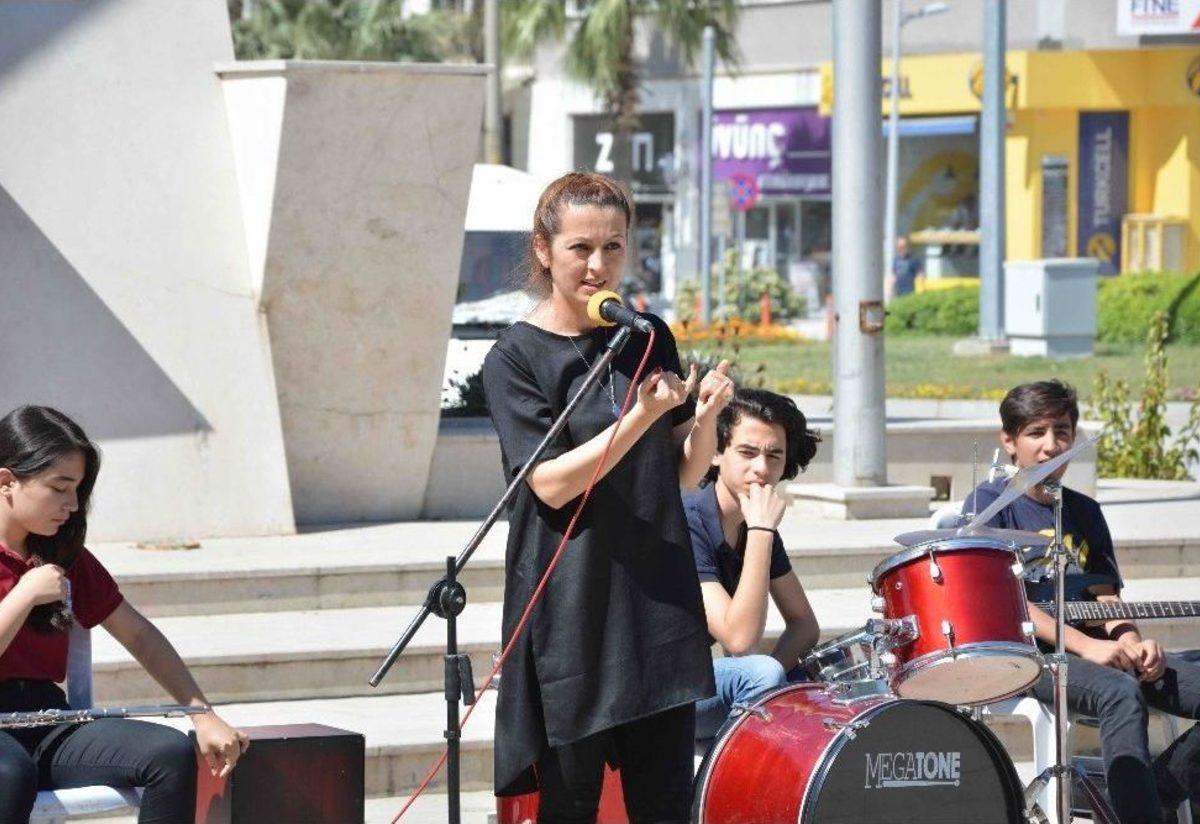 Muğla’nın Ortaca ilçesinde Engelliler Haftası kapsamında Başaran Özel Eğitim ve Rehabilitasyon Merkezince, işaret dili öğrenimine dikkat çekmek amacıyla “Elimdeki Ses” etkinliği düzenlendi.Ortaca Tören alanındaki etkinlikte, Dalaman Halk Eğitim Merkezi bünyesinde işaret dili eğitimi alan kursiyerler, ilkokul öğrencileri ve vatandaşlar ile birlikte “Sev Kardeşim” parçasına işaret diliyle eşlik etti.İşitme engelli bireyler ile günlük hayatta daha iyi anlaşılabilmesi için Dalaman Halk Eğitim Merkezince bu yıl ilk defa açılan işaret dili kurslarında eğitim alan 20 kursiyer, engelli bireylerin sorunlarını gündeme getirmek amacıyla işaret diliyle şarkı söyleyerek etkinliğe katkıda bulundu.Dalaman Halk Eğitim Merkezinde işaret dili eğitimi veren Filiz Şenol, bölgede yaşayan işitme engelli bireylere dikkat çekmek ve bu bireylere sahip çıkılması gerektiğini vurgulamak amacıyla etkinlikte yer aldıklarını ifade etti. Toplumda işitme engelli bireylere karşı gösterilen hoşgörüsüzlüğün giderilmesi gerektiğine işaret eden Şenol, “Ortaca’da işitme engelli spor kulübümüz var. Sporda çok başarılı çocuklarımız var. Milli takıma yetiştirdiğimiz sporcularımız var. En azından bu çocuklarımıza destek verilmesi açısından bu etkinlik ile katkı yapmak istiyoruz” diye konuştu.“Kurslara kendimde dahil oldum”Bu sene ilk defa Halk Eğitim Merkezi bünyesinde işaret dili kursu açıklarını ve 40 kursiyerin katılım gösterdiğini aktaran Dalaman Halk Eğitim Merkezi Müdür Yardımcısı Nermin Kayadelen, “bizde bu konuda çok bilinçli değildik. Gurup şeklinde açtığımız kursların birine ben kendimde dahil oldum. Kurs ile çevrede çok güzel bir izlenim yarattık. Bunu sosyal medyada da sık sık paylaşıyoruz. Kurslarımız devam ediyor. Bunu öğrencilere de yaymak istiyoruz. Umarım amacına ulaşır. Günlük ihtiyaçları giderebilecek şekilde işitme engelli bireyler ile iletişim kurabilmemiz gerekiyor” dedi.İşitme engelli öğrencileri olmamasına rağmen her yıl işaret dili ile ilgili etkinlik yaptıklarını dile getiren Başaran Özel Eğitim ve Rehabilitasyon Merkezi Psikoloğu Semra Aksuyek ise, amaçlarının işitme engelli bireylerin iyi anlaşılabilir olmasını sağlamak olduğunu söyledi.Engelli bireyler ile çalışırken ekip çalışması yapılmasının önemine değinen Aksuyek, toplumun tüm kesimlerinin bu çalışmalara katılması gerektiğini de sözlerine ekledi.