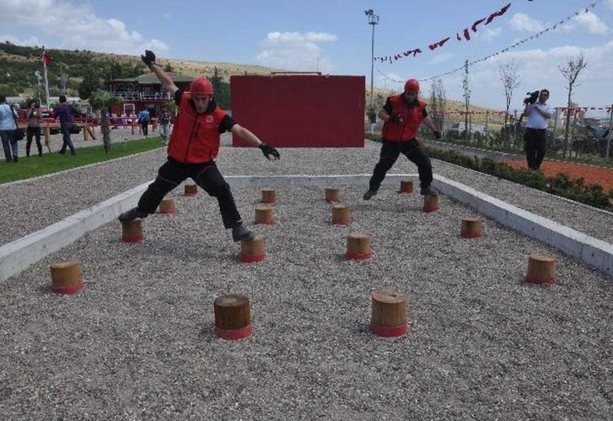Açılışın ardından eğitim alanında tatbikat başladı. Komando erlerinin eğitimini andıran tatbikatta itfaiye erleri pentatlonda ısındı. İpe tırmanan itfaiyeciler ardından engelli koşu parkurundan geçti.