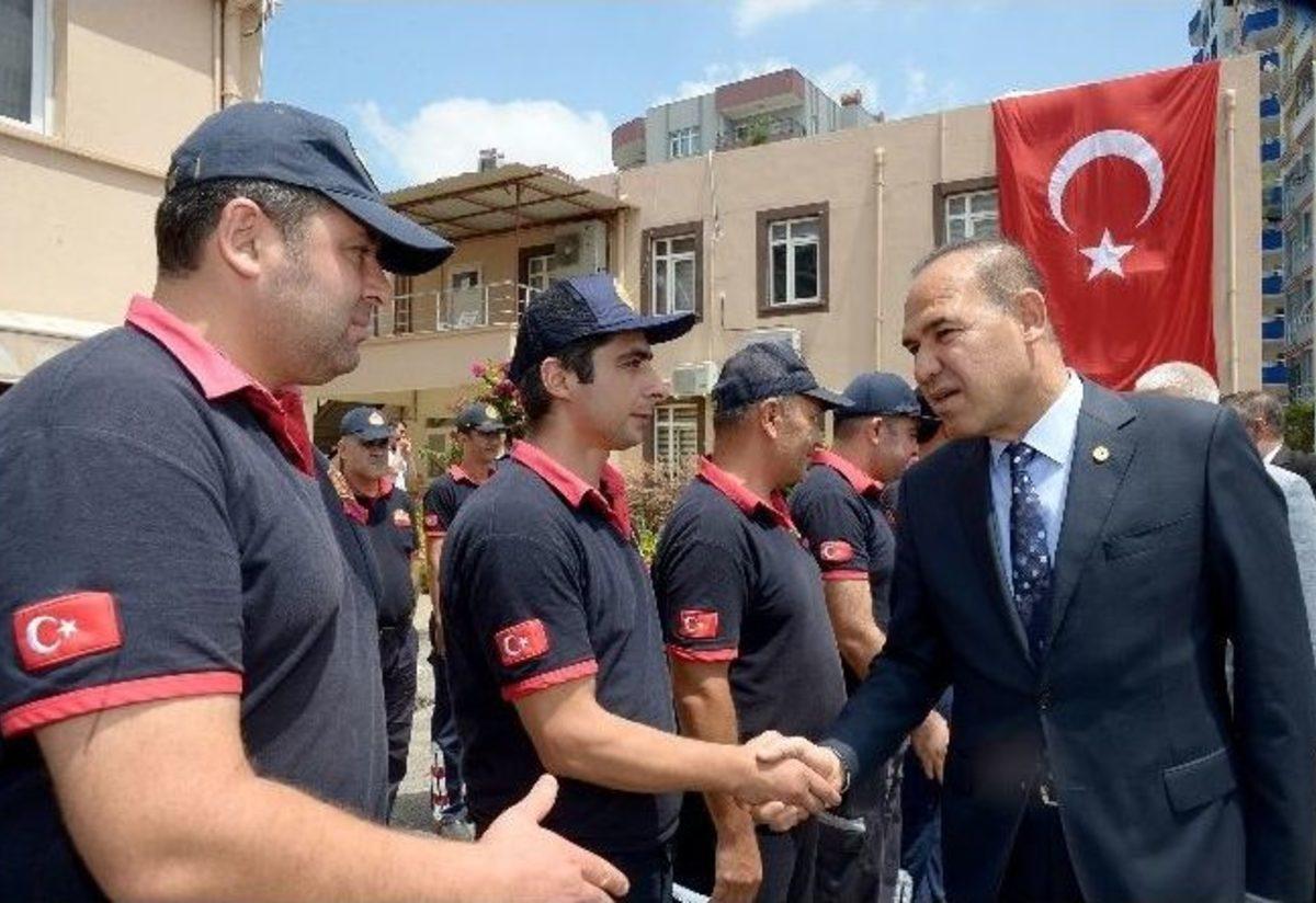 Adana Valisi Mahmut Demirtaş ve Adana Büyükşehir Belediye Başkanı Hüseyin Sözlü, Ramazan Bayramı arifesinde görev başındaki itfaiyeciler ve zabıta personeli ile bayramlaştı.Vali Mahmut Demirtaş ve Başkan Hüseyin Sözlü, beraberinde Adana İl Emniyet Müdürü Cengiz Zeybek ve Adana Müftüsü Arif Gökce, Genel Sekreter Yardımcısı Mehmet Şahin ile birlikte merkez Yüreğir ilçesi Serinevler Mahallesi’ndeki İtfaiye Daire Başkanlığı’na gidip, itfaiyeciler ile zabıtalarla bayramlaşma programına katıldı. Vali Demirtaş ve Başkan Sözlü ile beraberindeki protokol üyeleri, ilk olarak kendilerini karşılayan İtfaiye Daire Başkanı Gazi İlbars Alpman ve Zabıta Daire Başkanı Mustafa Akyıl’la bayramlaştı. Vali Demirtaş ve Başkan Sözlü, daha sonra itfaiyeciler ve zabıtalarla tek tek tokalaşarak bayramlaştı.Başkan Sözlü, yeni teknolojilere sahip hizmet araçları ve donanımlarıyla Türkiye’nin en güçlü itfaiyeleri arasında yer alan Adana itfaiyesinin yürüttüğü hizmet ve çalışmalar hakkında Vali Demirtaş’a bilgiler verdi. Sözlü, itfaiye ve CANKUR’un yangın, trafik kazası ve doğal afetlerde yürüttüğü çalışmaların yer aldığı gazete haberlerini gösterdi. İtfaiyeciler de Vali Demirtaş’ın huzurunda mini tatbikat gerçekleştirdi. Başkan Sözlü, Ramazan Bayramı’nda da itfaiye ve zabıta hizmetlerinin kesintisiz devam edeceğini, Adanalıların can ve mal güvenliğini koruyup, bayramın huzur içinde geçmesi için görev yapacaklarını bildirdi. Vali Demirtaş da itfaiyecilere ve zabıtalara bayram mesaisinde de başarılar ve kolaylıklar diledi.