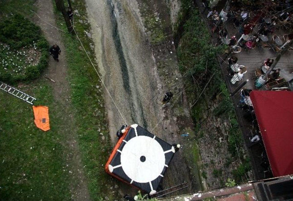 Vatandaşların şaşkın bakışları arasında atlayacağını söyleyen Demir için itfaiye ekipleri de köprünün altına hava yastığı açtı. Fakat açılan yastığın akıntıya kapılması ekiplere zor anlar yaşattı. Hava yastığının peşinden koşan ekipler bir süre sonra yastığı durdurabildi. Daha sonra olay yerine gelen diğer itfaiye ekibince hava yastığı halatlar ile ağaca bağlandı.