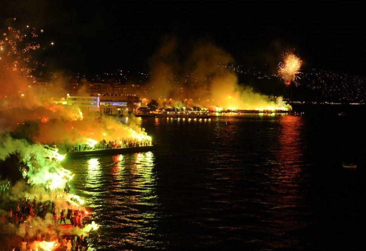 İzmir'in kurtuluş günü 9 Eylül kutlamaları kapsamında dün saat 21.00’de, aynı anda şehrin entin sahil noktalarından atılan havai fişekler rengarenk görüntüler oluşturdu. İzmirlilerin coşkusu ile büyük bir kutlamaya sahne olan Gündoğdu Meydanı’nda oluşan muhteşem atmosferde konuşan Büyükşehir Belediye Başkanı Aziz Kocaoğlu, “9 Eylül'ü, çakma Dünya İzmirliler Günü olarak ilan etmeye çalışanlar, İzmirlilerden Gündoğdu Meydanı’nda cevabını almıştır.” dedi.Gün boyu süren İzmir’in düşman işgalinden kurtuluşunun 91. yıldönümü etkinliklerindeki coşku, akşam büyük bir katılımla yapılan fener alayıyla doruğa ulaştı. Başkan Kocaoğlu, eşi Dr. Türkegül Kocaoğlu ile birlikte 9 Eylül’ü kutladı. Cumhuriyet Meydanı’ndan başlayan fener alayında Kocaoğlu ve eşi, vatandaşlara karanfiller verdi. Gündoğdu Meydanı’na kadar büyük bir kalabalıkla birlikte yürüyen protokol mensupları, evlerinin balkonlarına çıkarak kurtuluş coşkusunu alkışlayanlara da el sallayarak selam verdi. Türk bayraklarıyla yürüyen kortej, renkli görüntüler oluşturdu.