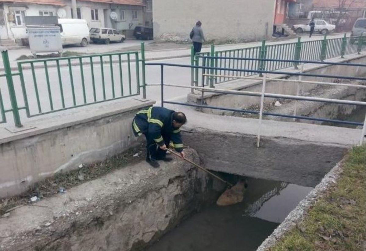Kanala Düşen Köpeği İtfaiye Erleri Kurtardı